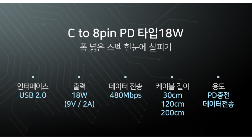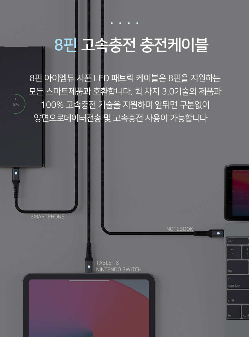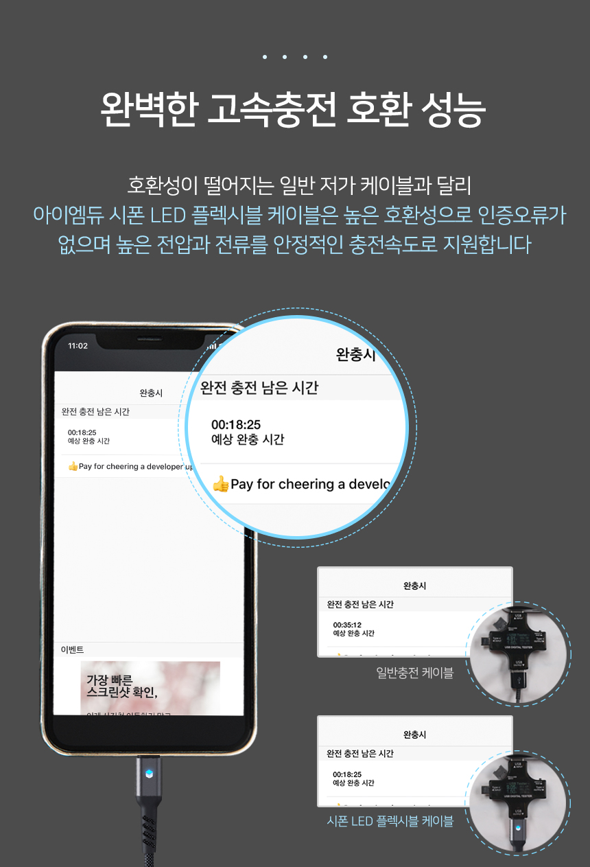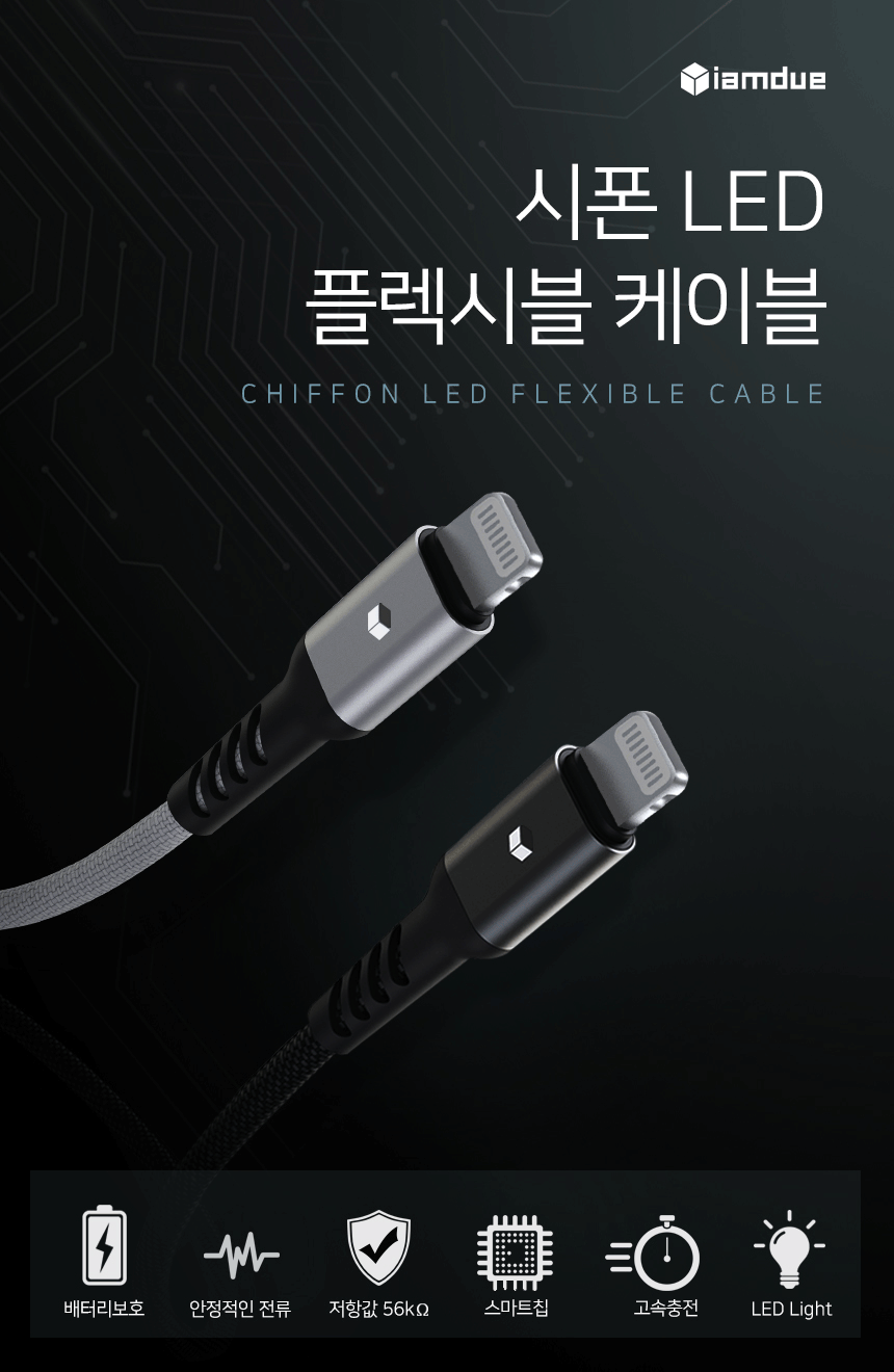 [아이엠듀]C to 8핀 아이폰 고속충전케이블 LED 플렉시블 30cm