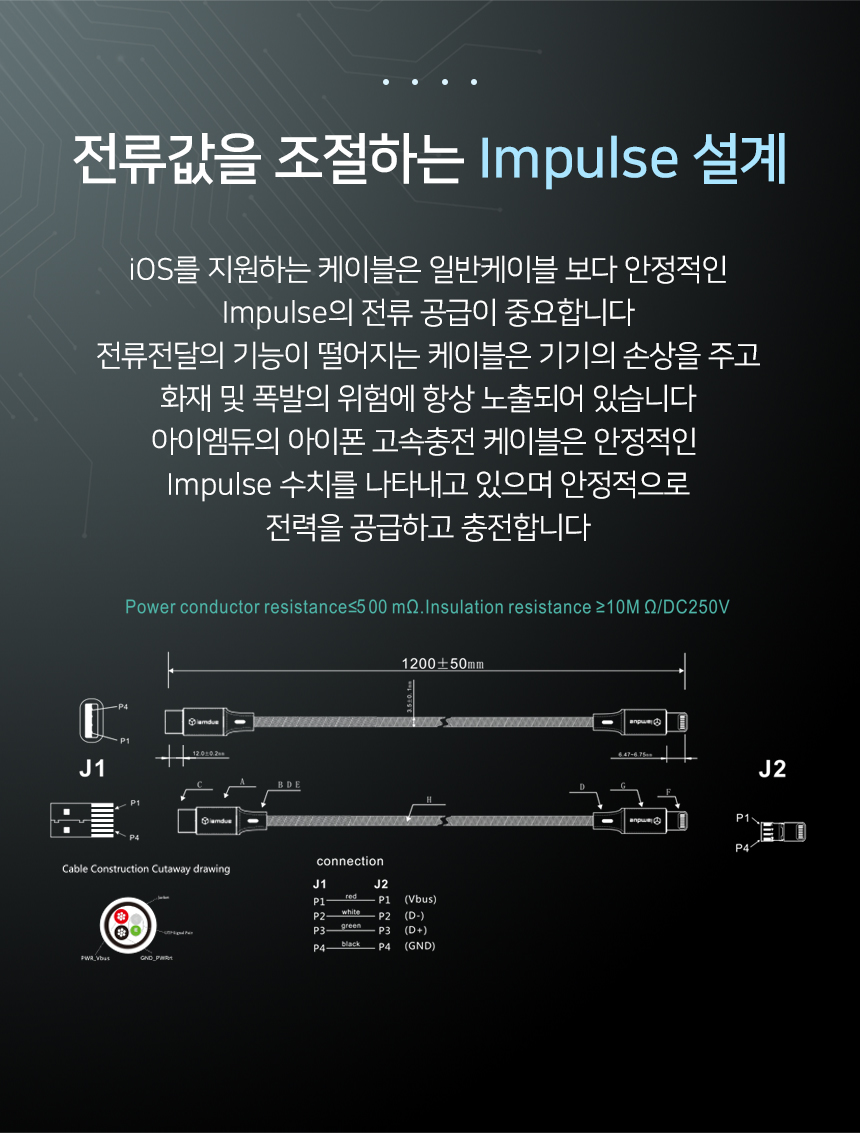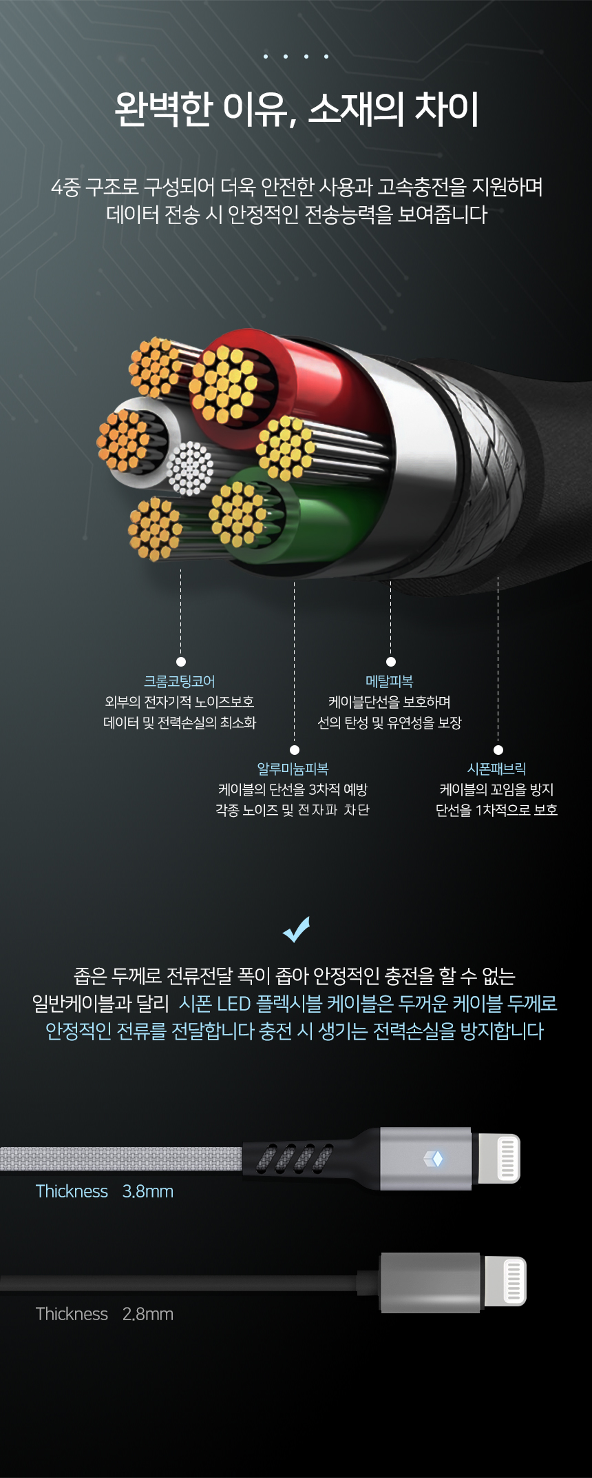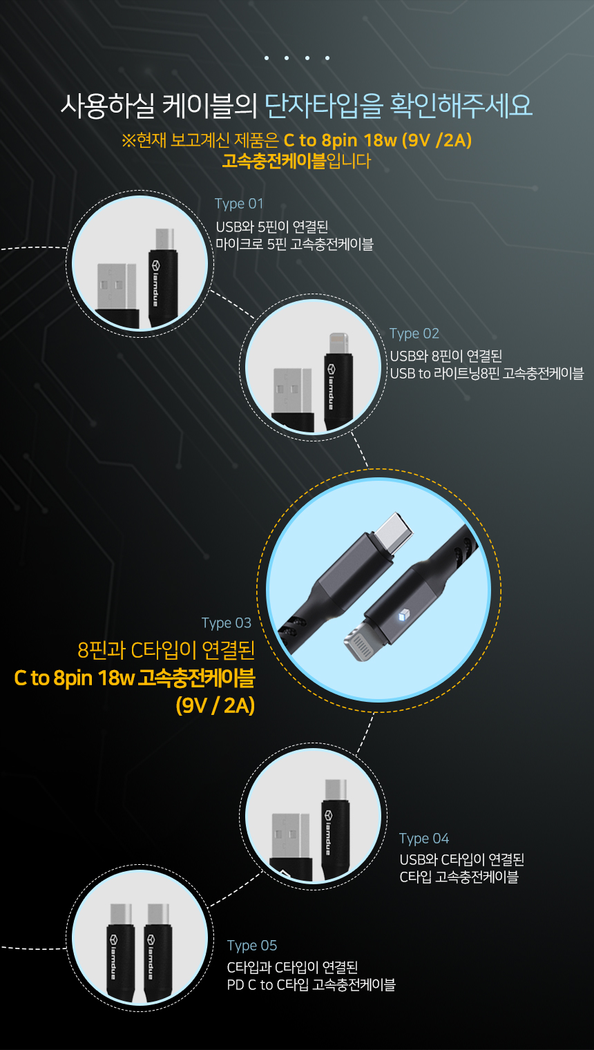 [아이엠듀]C to 8핀 아이폰 고속충전케이블 LED 플렉시블 30cm