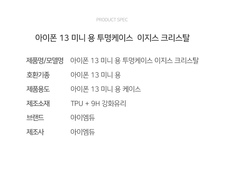 [아이엠듀]아이엠듀 아이폰 13 미니 투명 이지스 크리스탈 케이스
