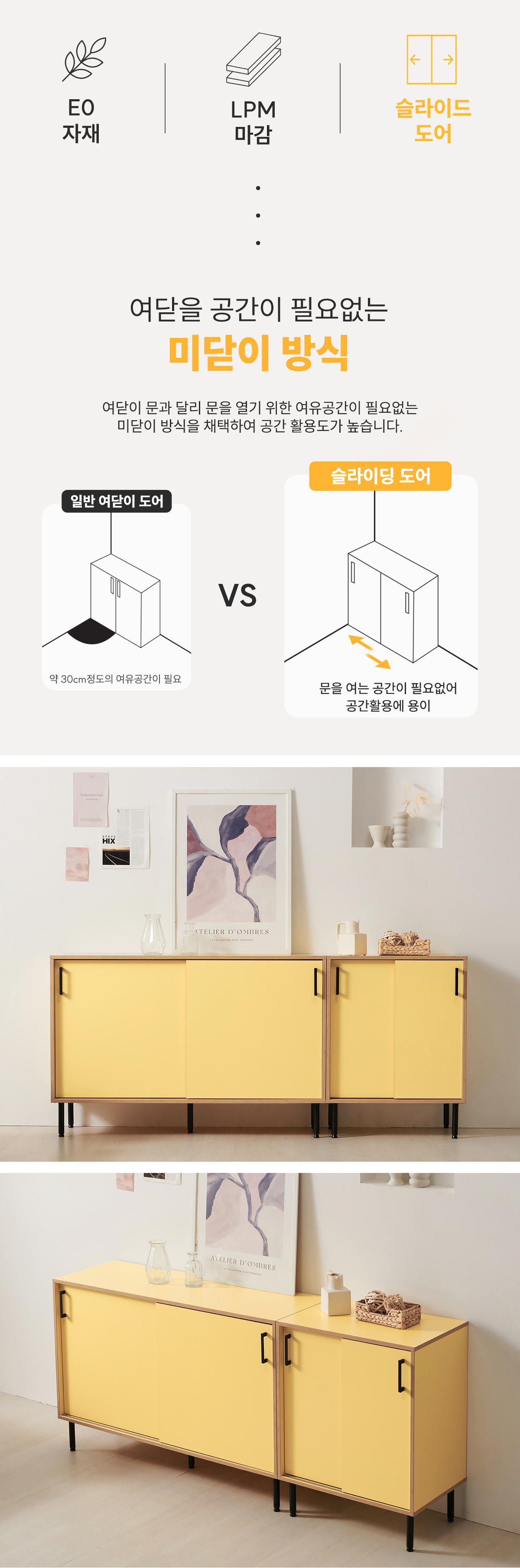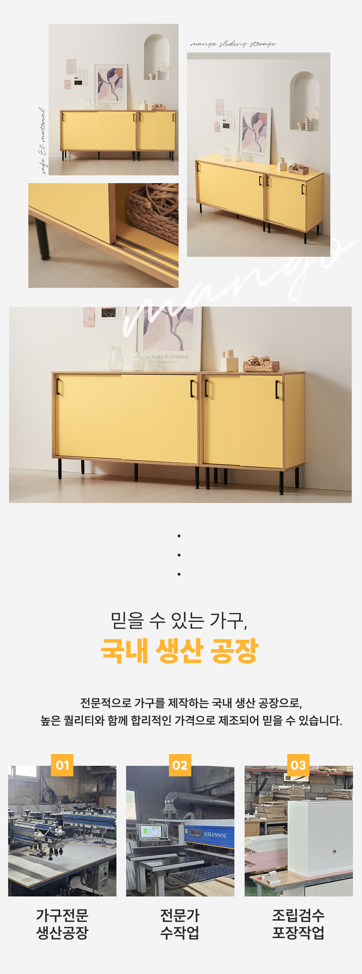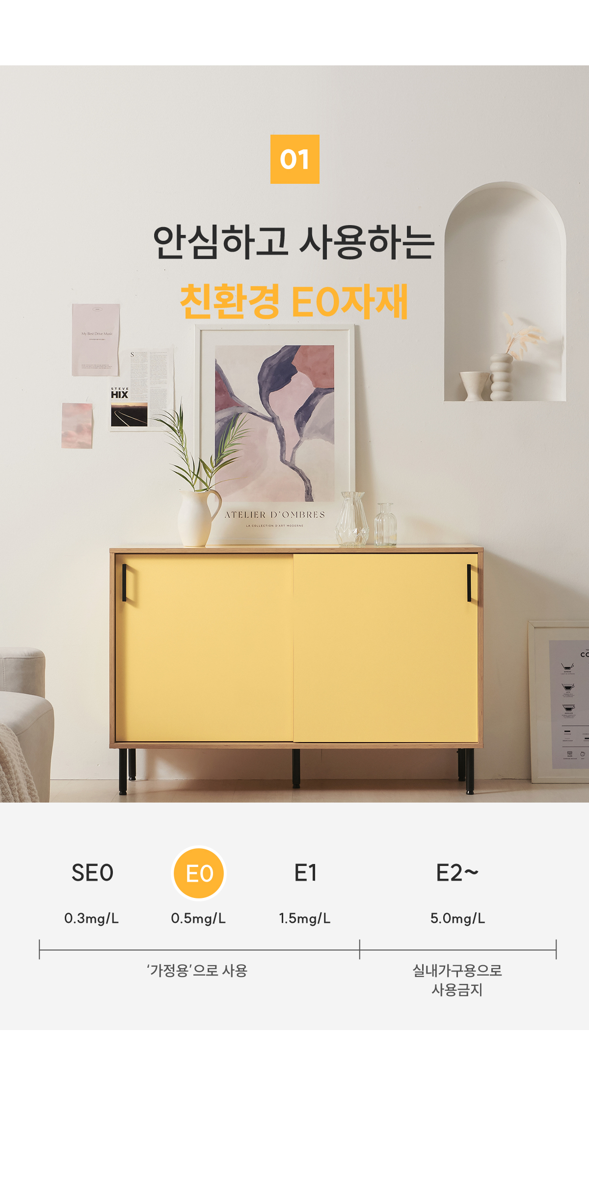 | 주요 소재 | E0 LPM, MDF, PB, ABS 자작엣지, 철제 등 |