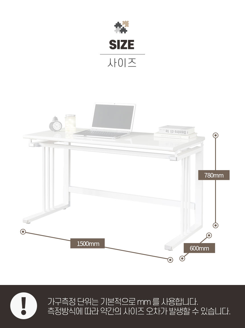 | 크기 | 책상 : W1500 x D600 x H780mm |