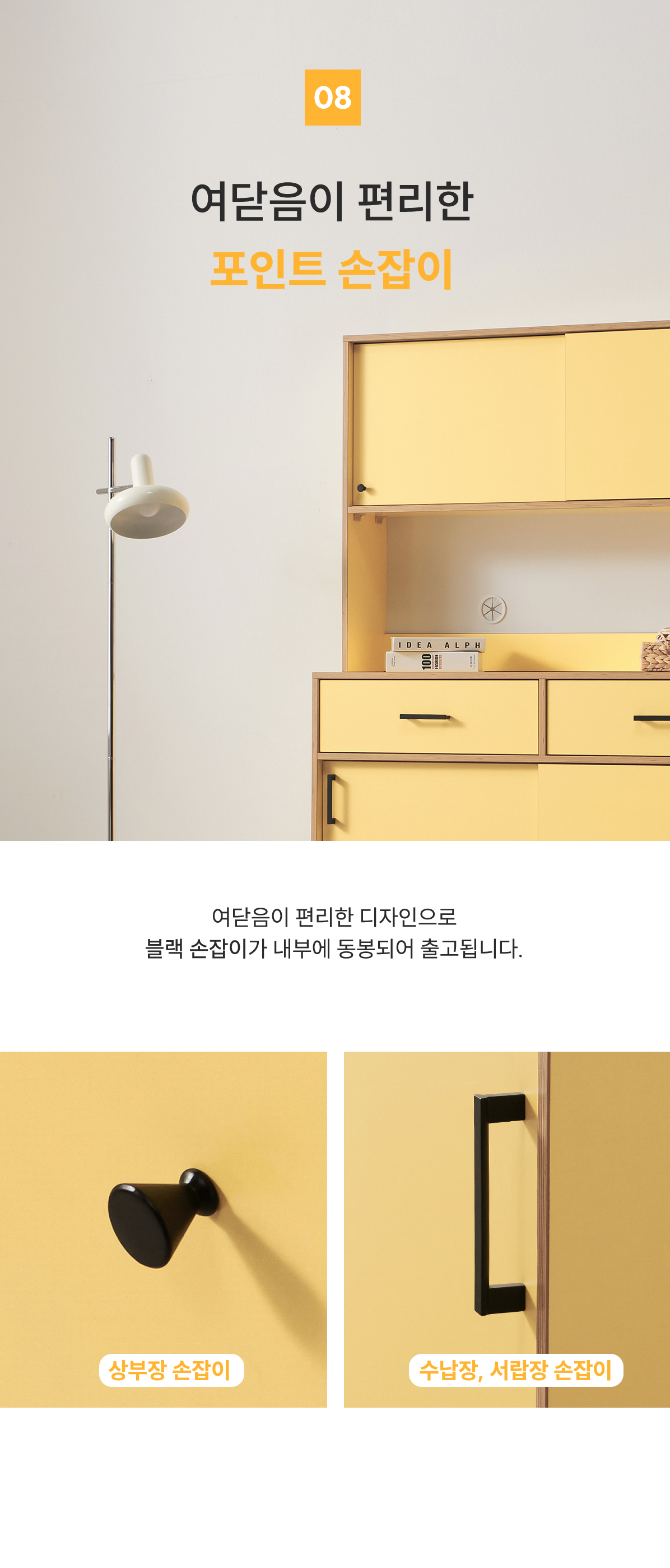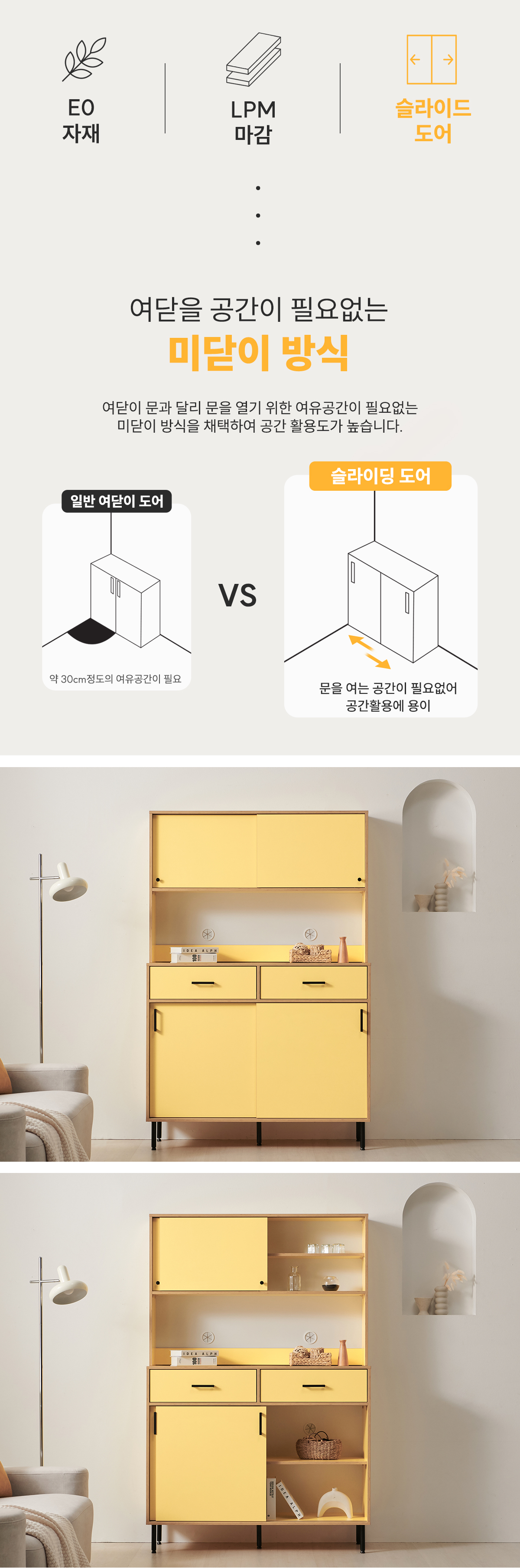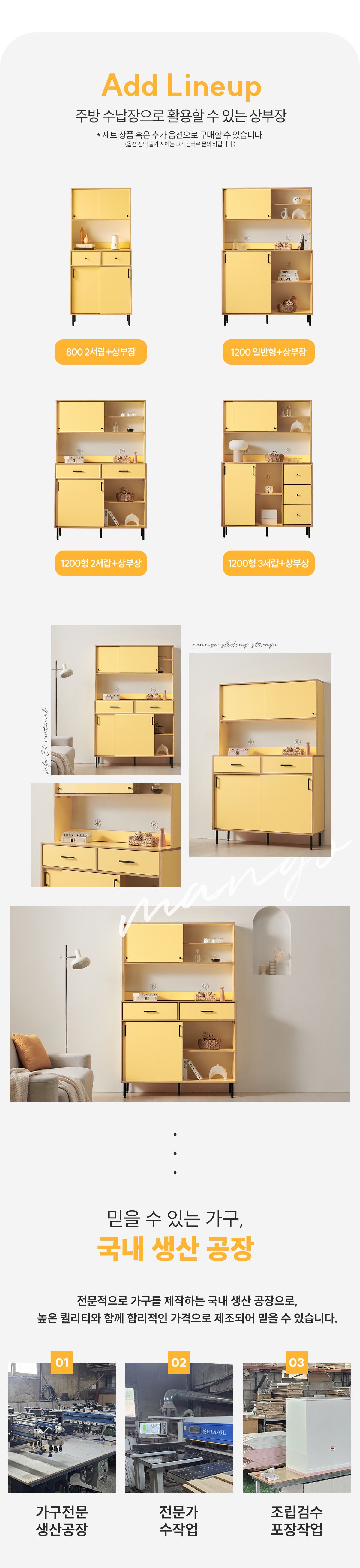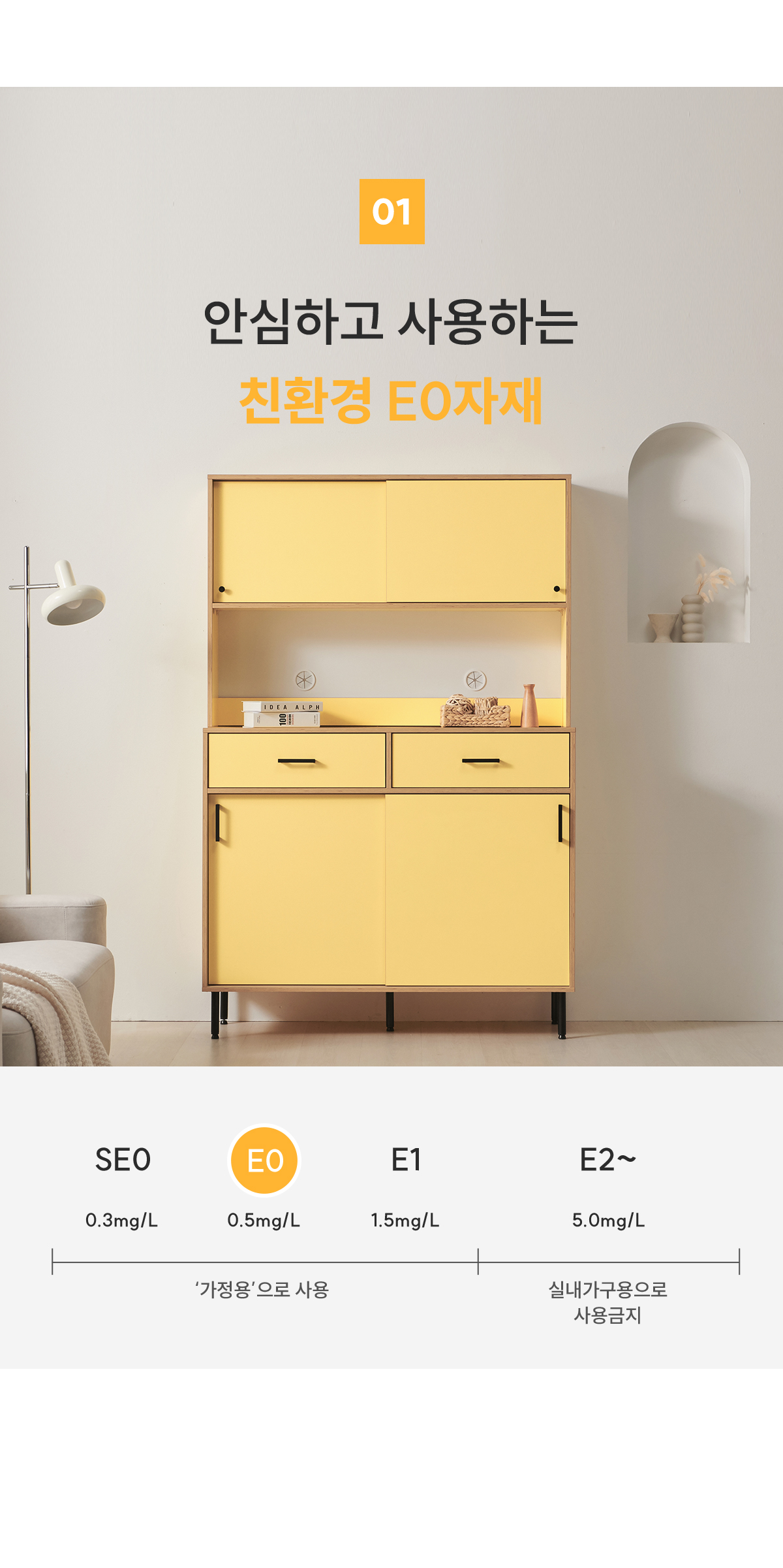 | 주요 소재 | E0 LPM, MDF, PB, ABS자작엣지, 볼레일, 철제 등 |