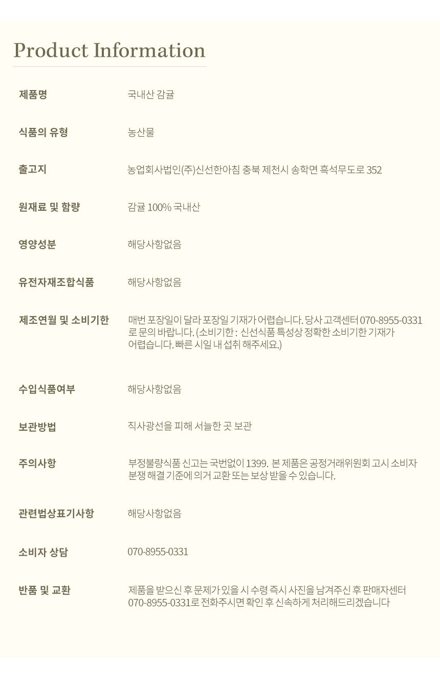 | 생산자, 수입품의 경우 수입자를 함께 표기 | 농업회사법인(주)신선한아침 |