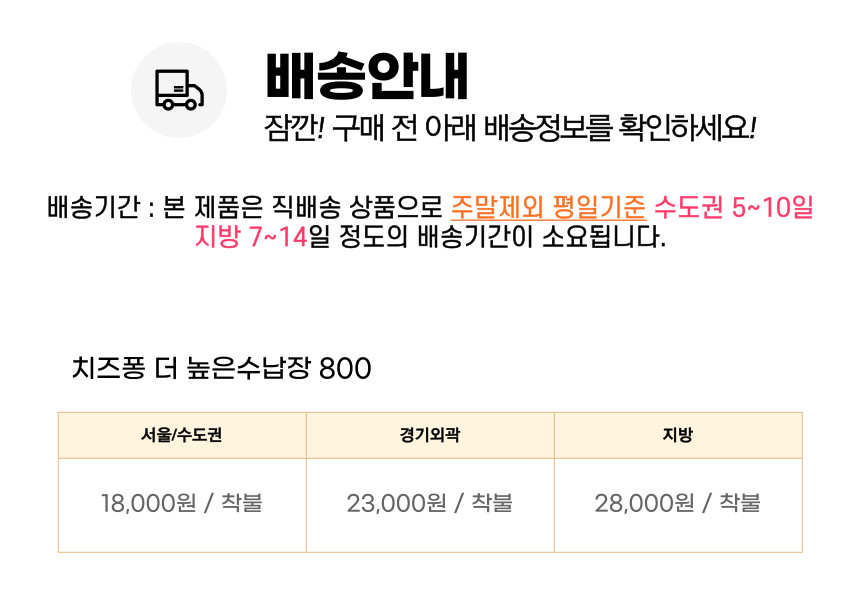 | 배송·설치비용 | 지역별상이 |