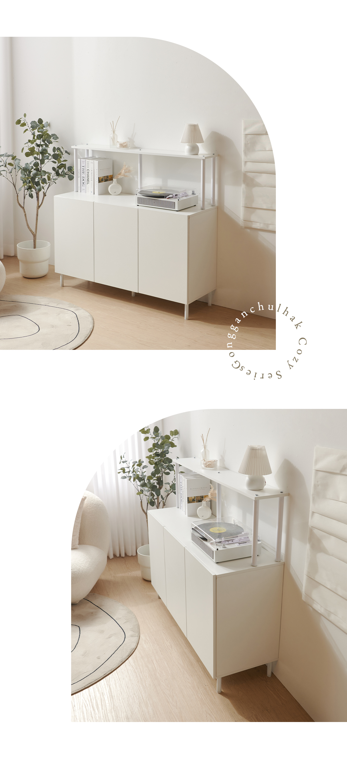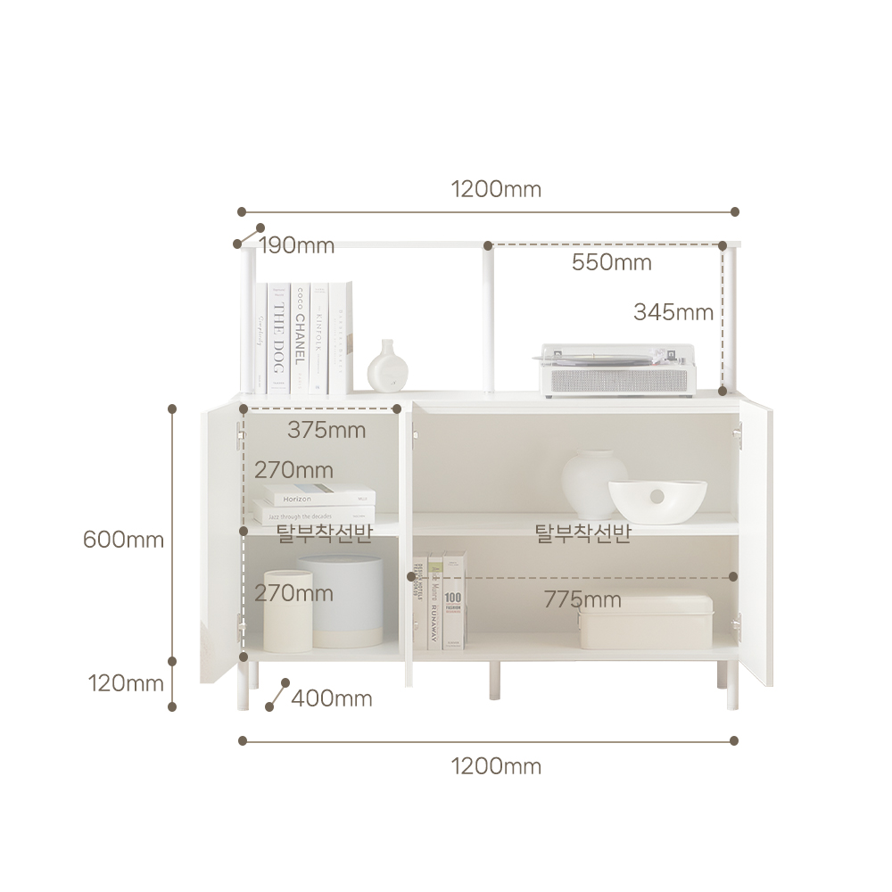 | 크기 | 수납장 : W1200 x D400 x H720mm / 1단 선반장 : W1200 x D190 x H 345mm |