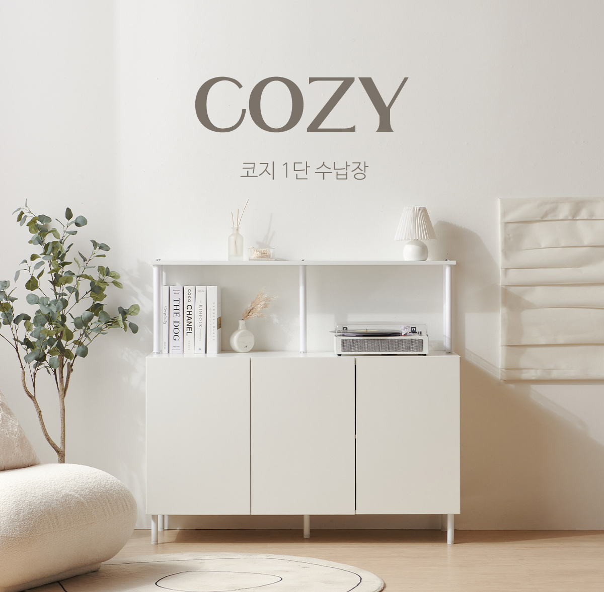 | 품명 | 코지 거실 다용도 화이트 1단 선반 수납장 1200 1color |