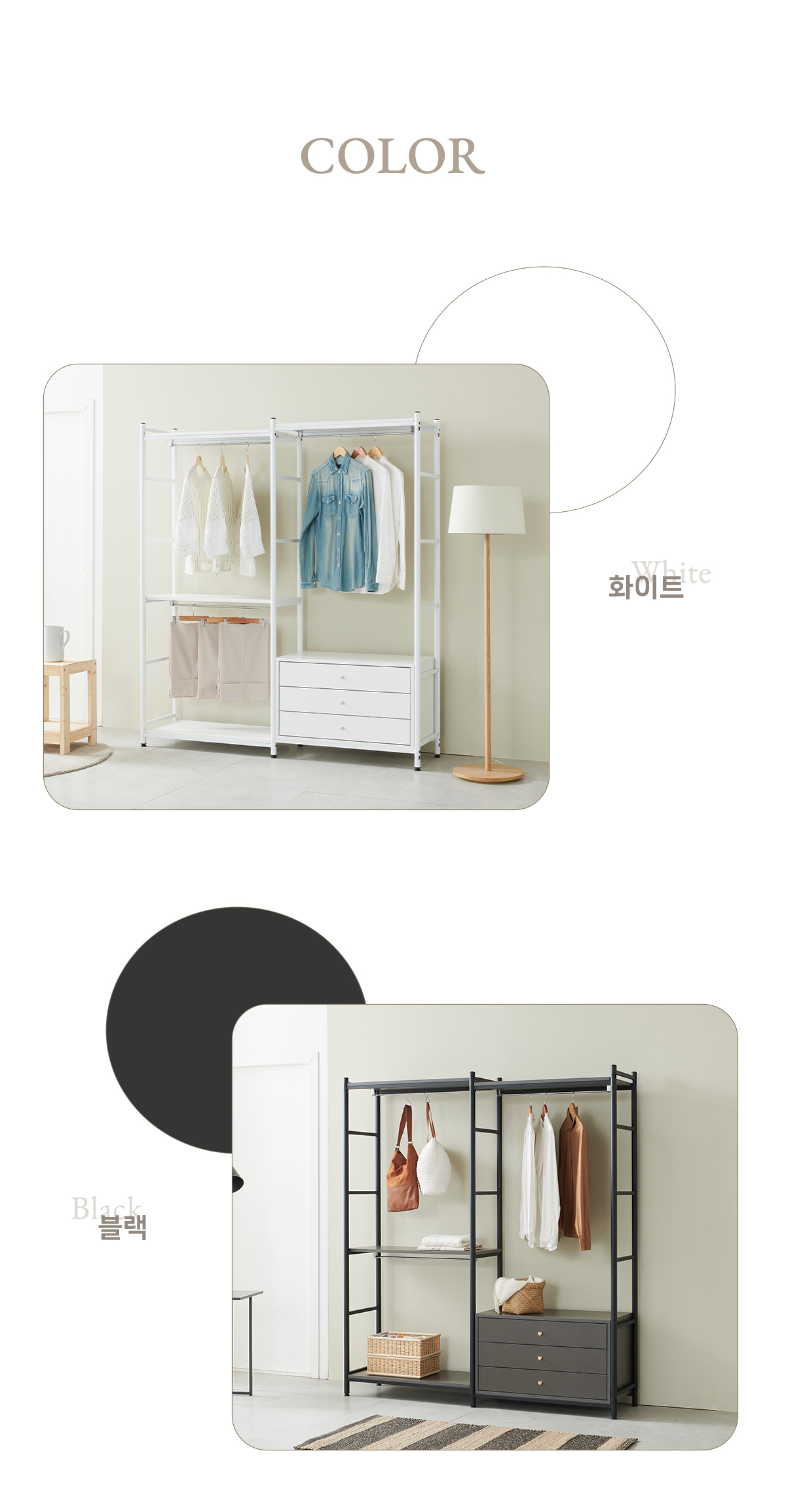 | 품명 | 카인 행거서랍장 철제 드레스룸 시스템 행거 세트 2colors |
