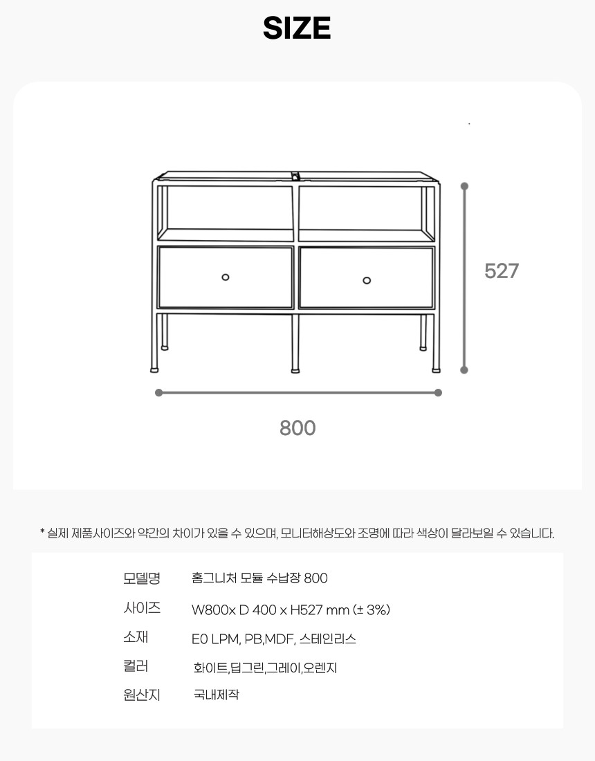 | 크기 | W800 x D400 x H527 |