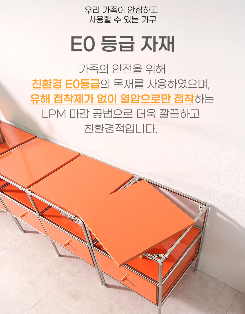 | 주요 소재 | E0 LPM, PB,MDF, 스테인리스 |