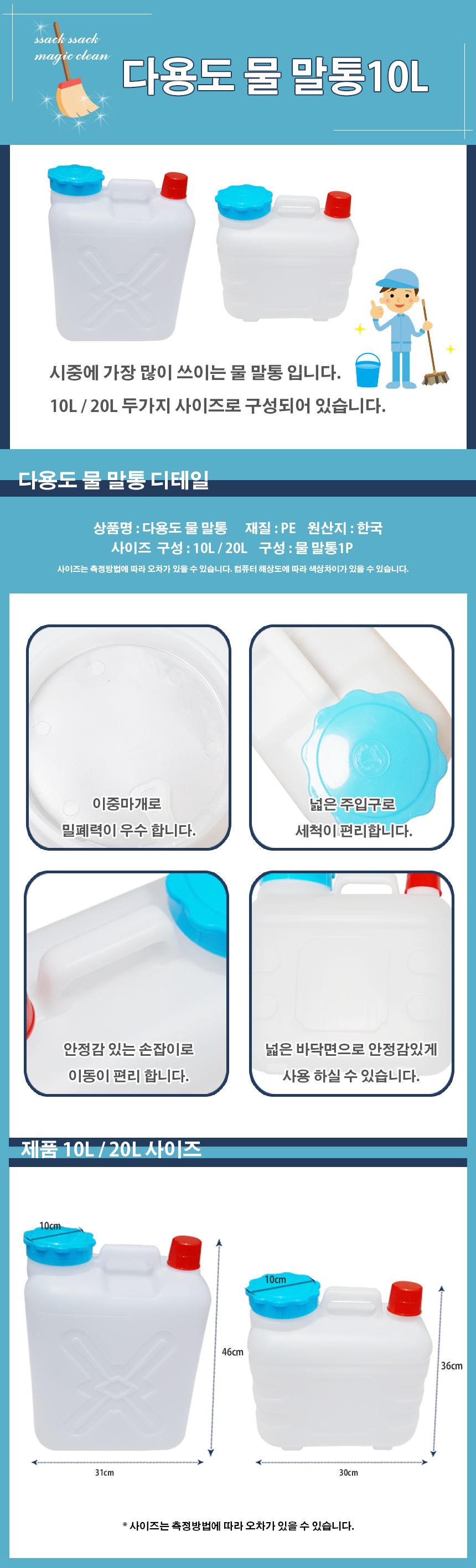 [제이오마켓]제이오마켓 다용도 물 말통10리터