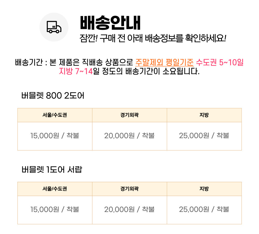 | 배송·설치비용 | 지역별 상이 |