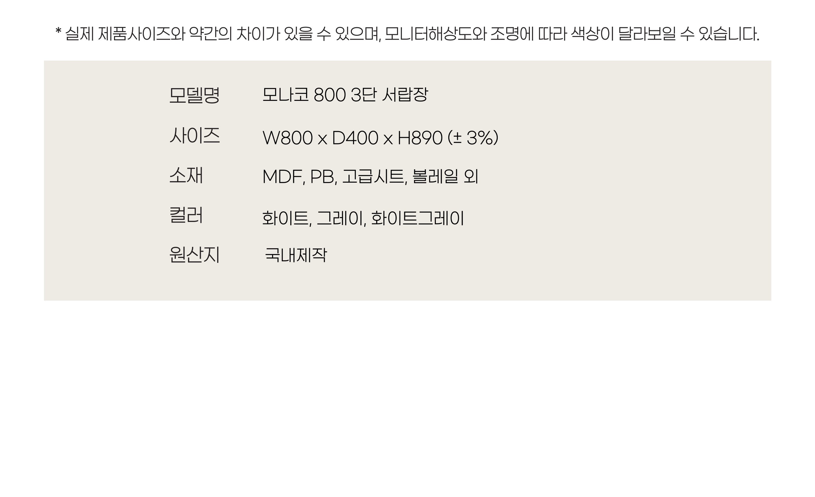 | 품명 | 모나코 800 3단 서랍장 |