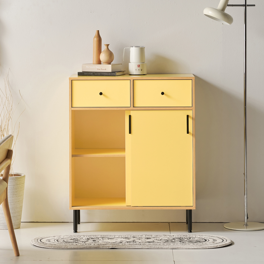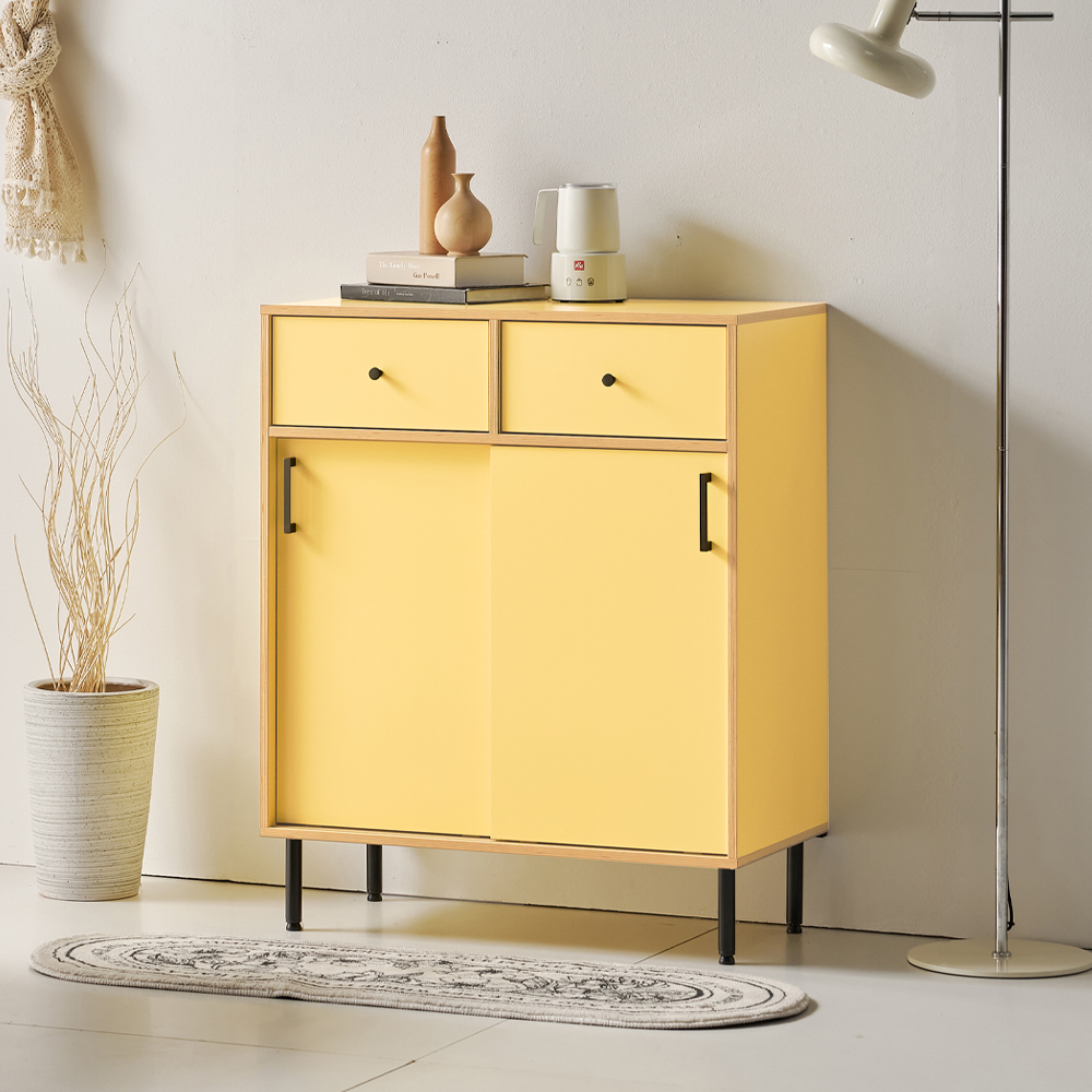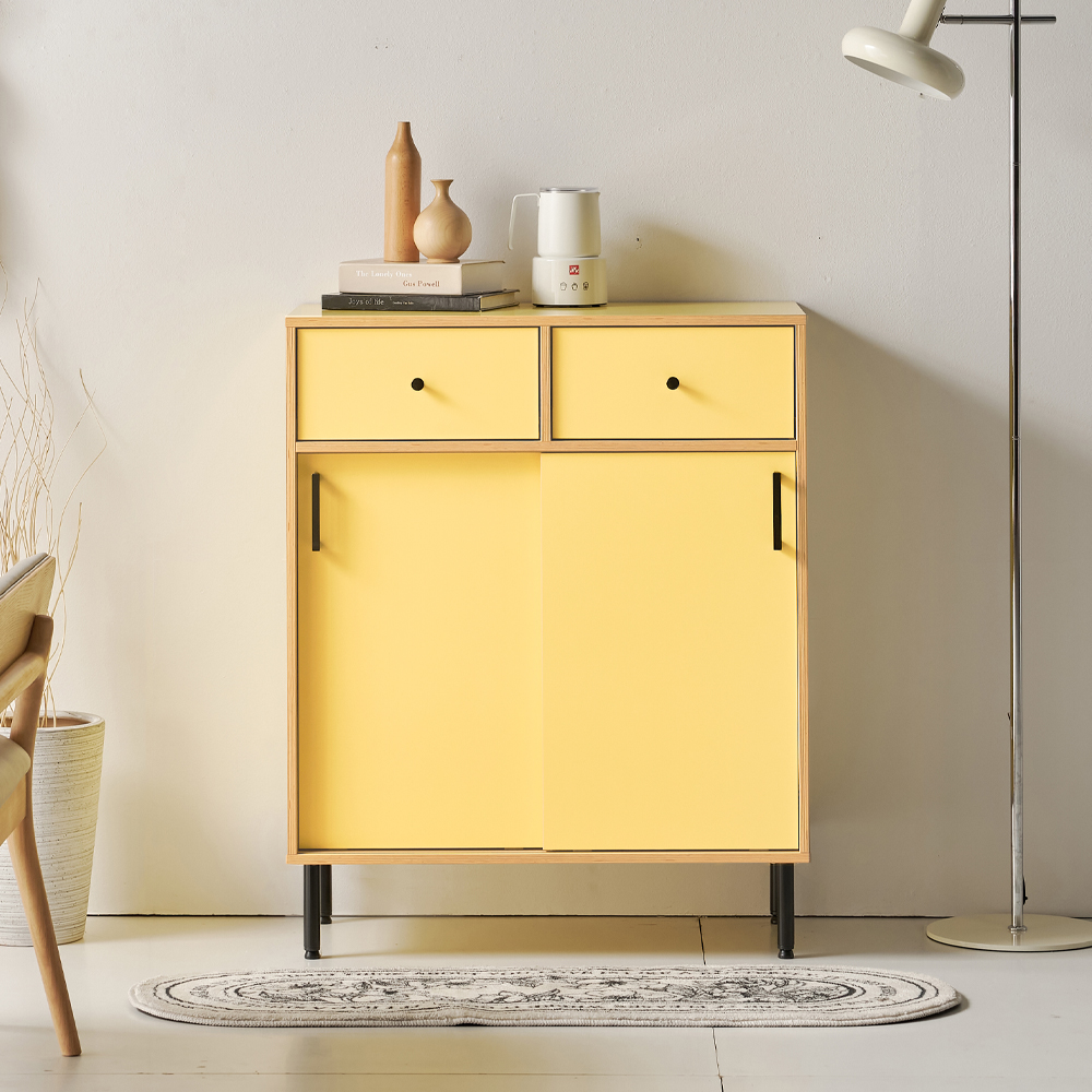 | 품명 | 망고 원룸 낮은 미니 슬라이드 도어 2서랍 미닫이 수납장 1color |