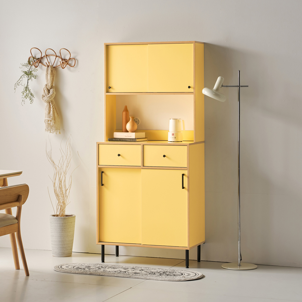 | 품명 | 망고 부엌장 주방 슬라이드 도어 2서랍 미닫이 상부장 수납장 1color |