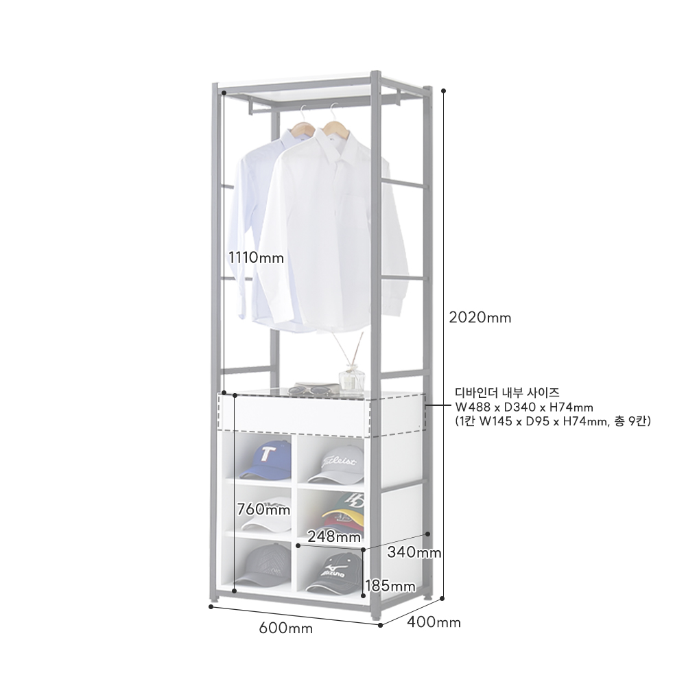 | 품명 | 아론 철제 시스템 옷장 서랍 디바인더 오픈형 수납장 600 4color |