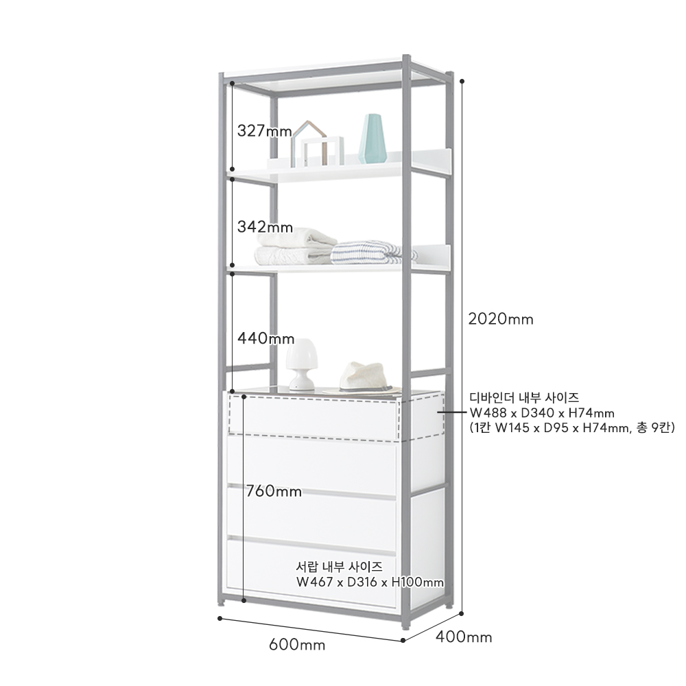 | 크기 | W600 x D400 x H2020mm |
