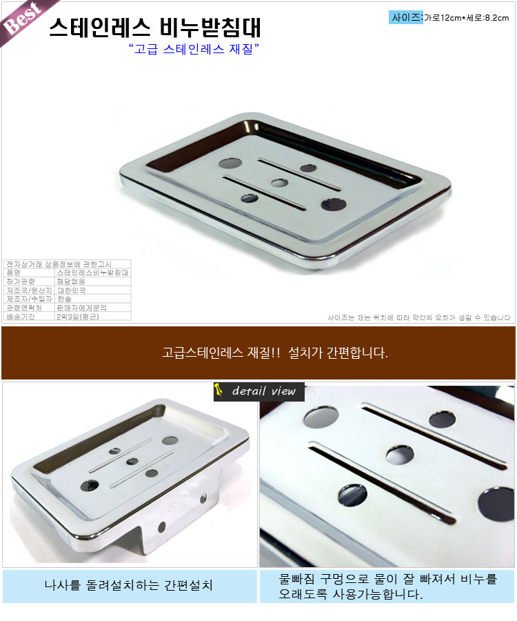 [와인앤쿡]스테인레스 감성 비누받침대 비누곽 비누선반 욕실용품