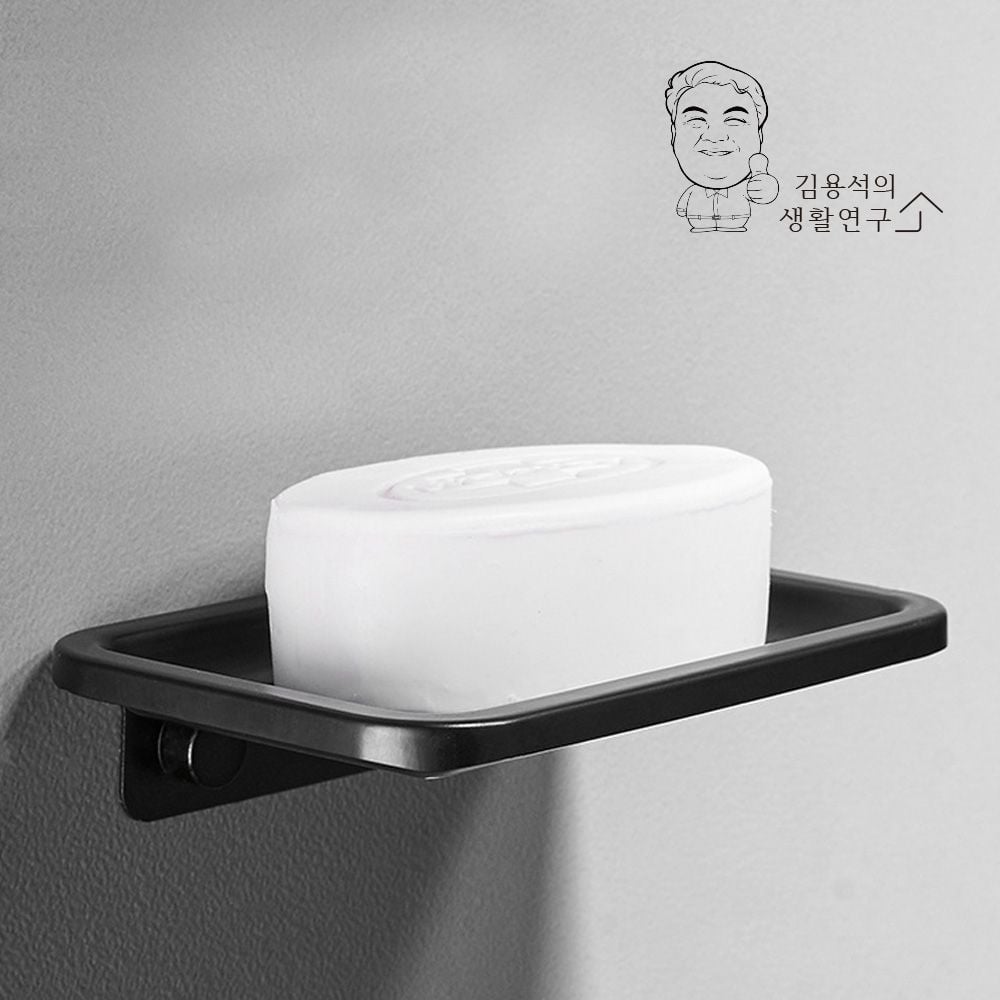 [와인앤쿡]모던 블랙 무타공 감성 비누받침대 무광 트레이 거치대 스티커식