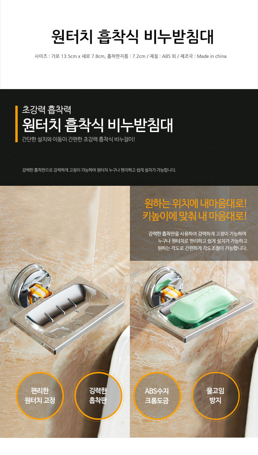 [와인앤쿡]욕실 비누 거치대 세면대 흡착식 감성 비누받침대