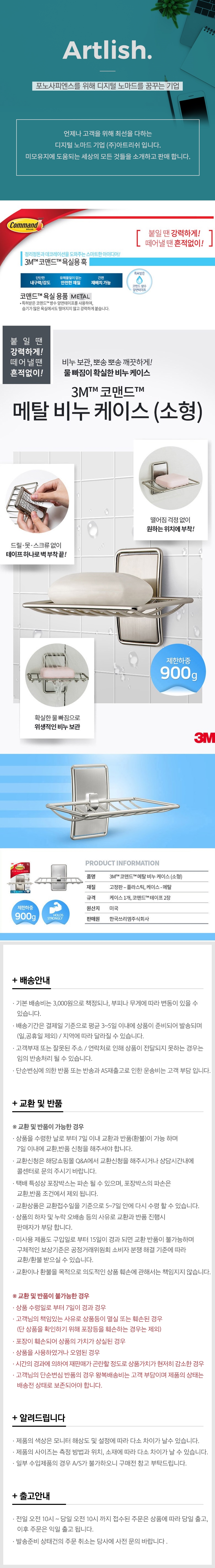 [와인앤쿡]욕실용품 비누보관 3M감성 비누받침대 메탈비누케이스/소형