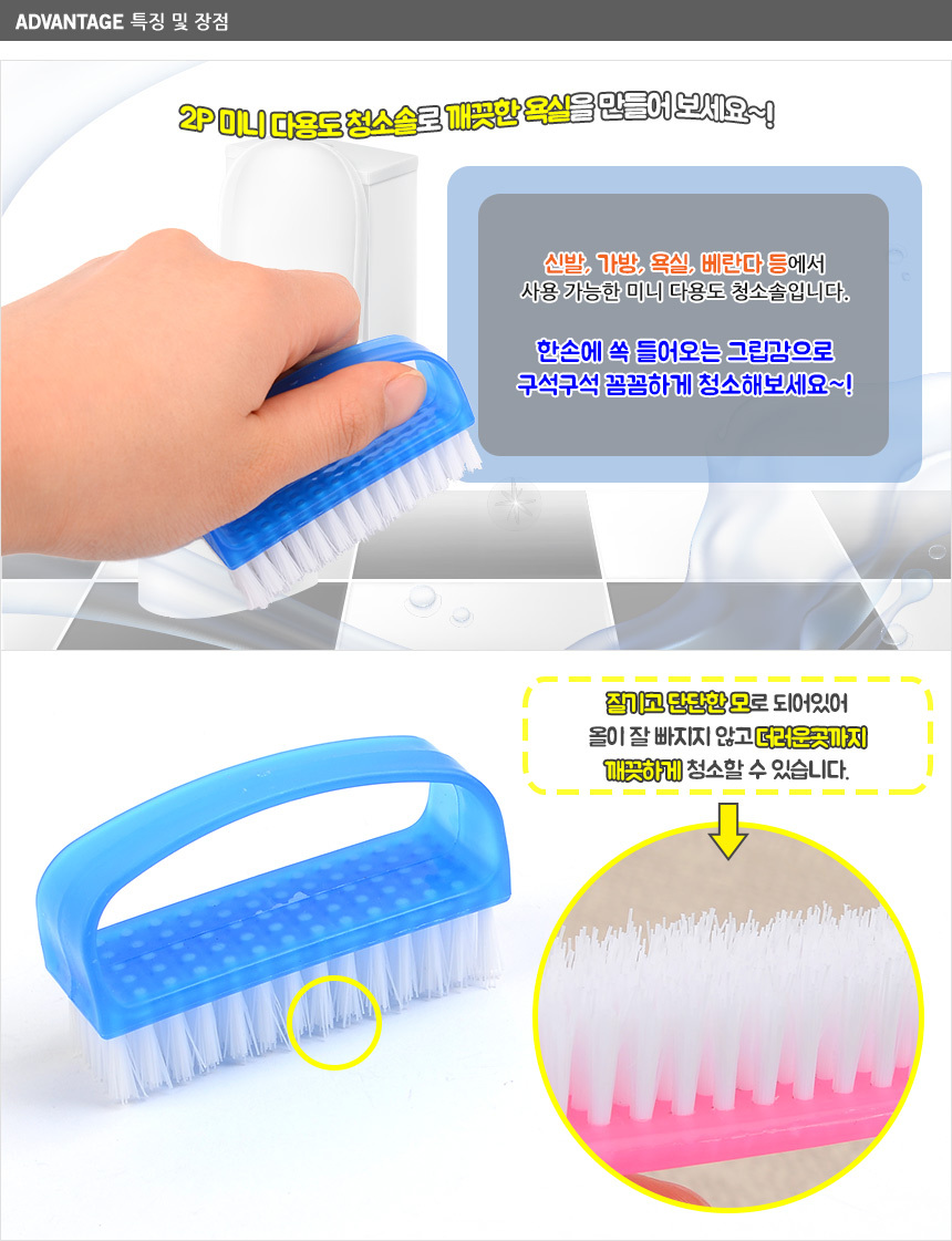 [와인앤쿡]소형 다용도 청소솔 세면대 전용 청소솔 2개 핸드형