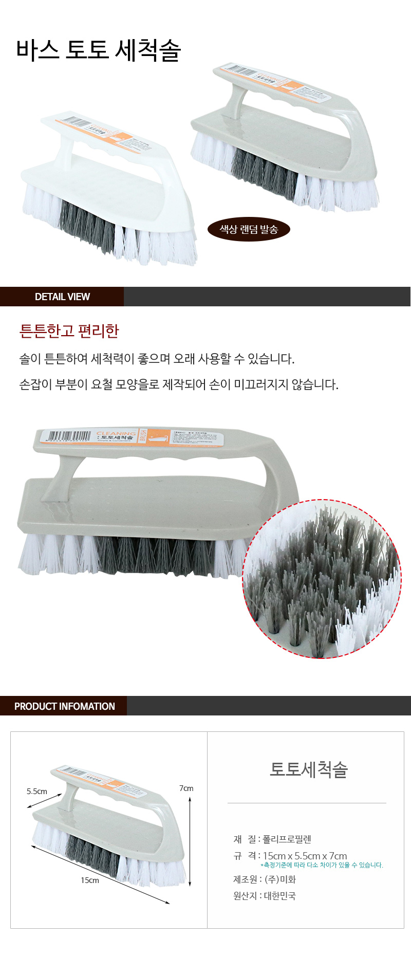[와인앤쿡]손잡이 세척솔 2P 싱크대 욕실 세면대 바닥 브러쉬