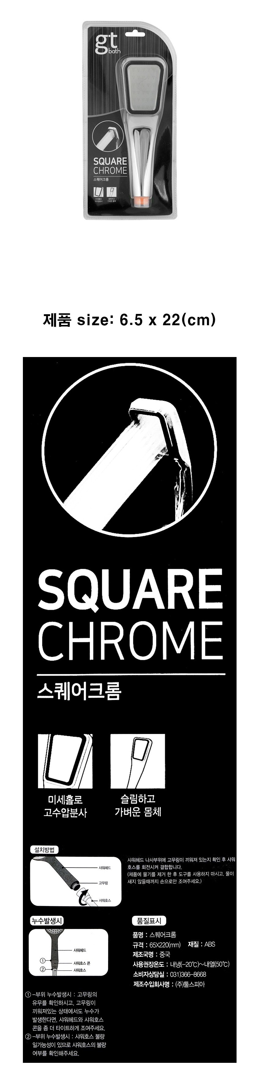 [와인앤쿡]사각 크롬 샤워 헤드