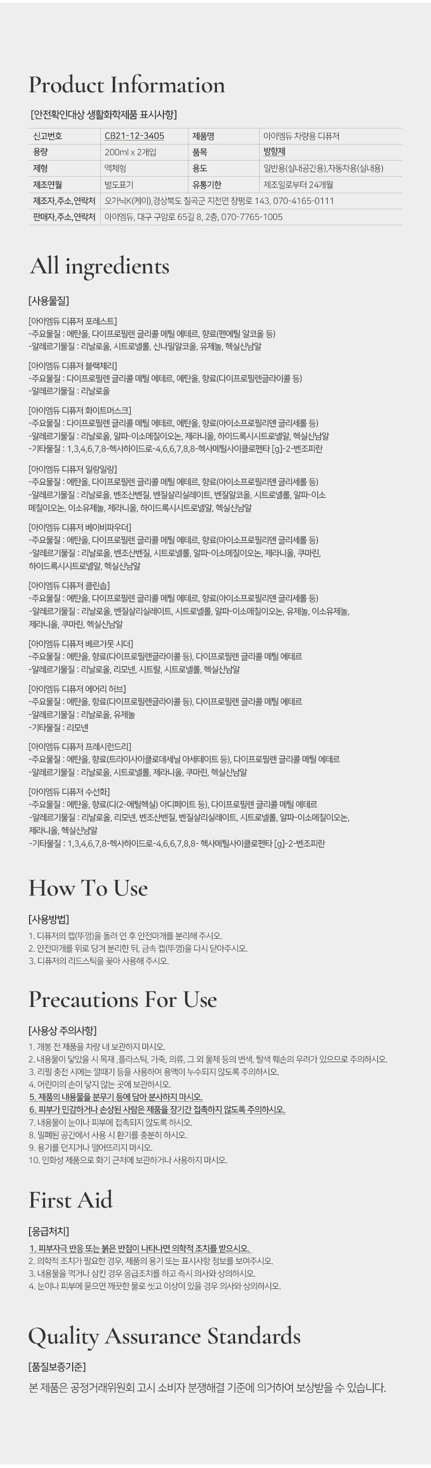 | 제조자, 수입품의 경우 수입자를 함께 표기 | 상세페이지참조 |