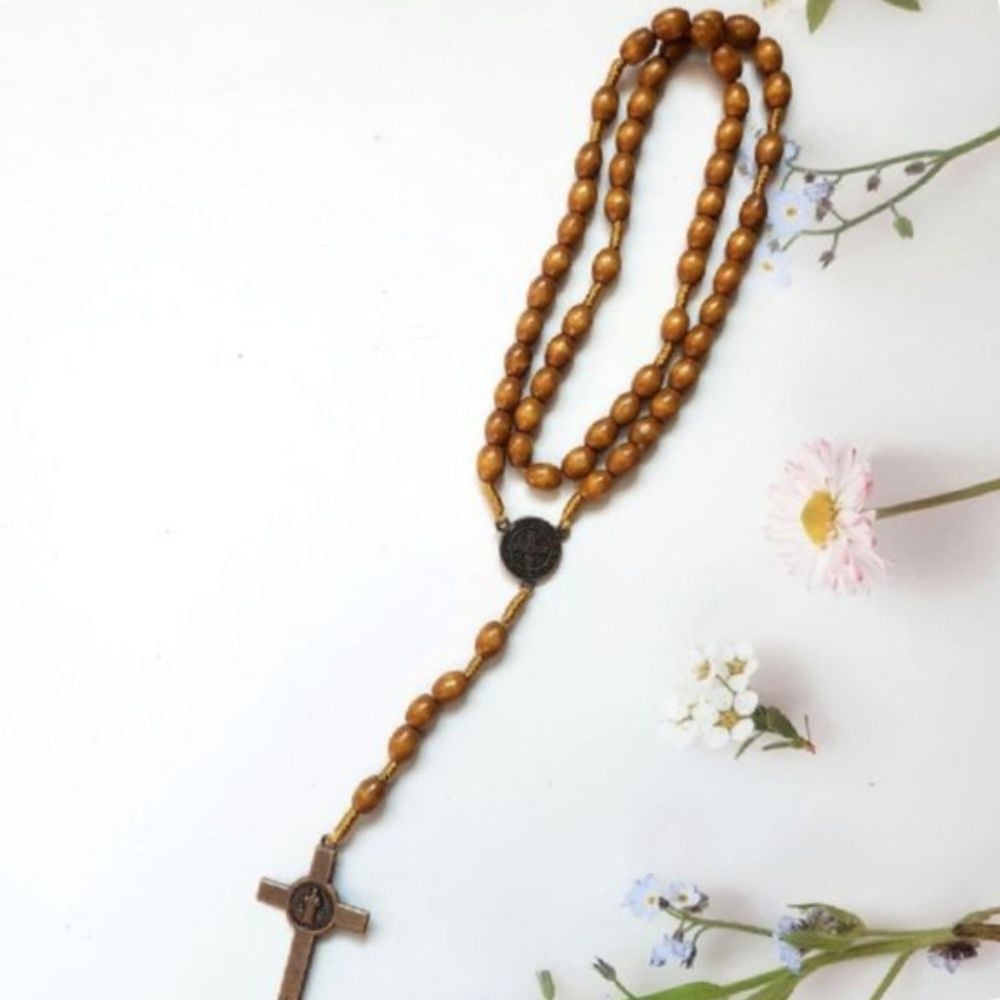 [와인앤쿡]천주교 우드 묵주 연한갈색