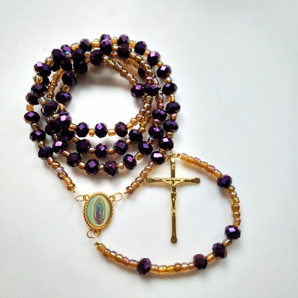 [와인앤쿡]천주교 묵주 퍼플 플랫 비즈