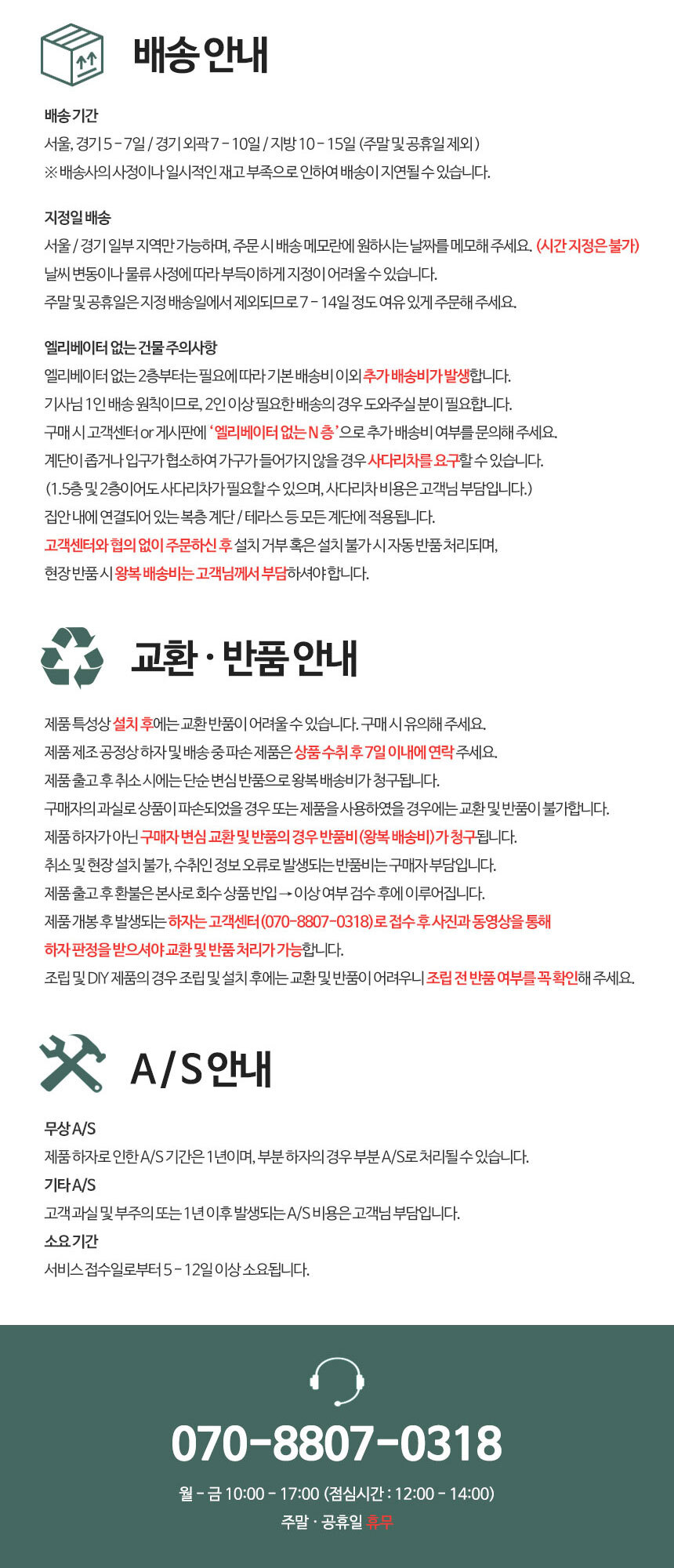 | 교환배송비 | 고객센터(07088070318)로 문의해주세요. |