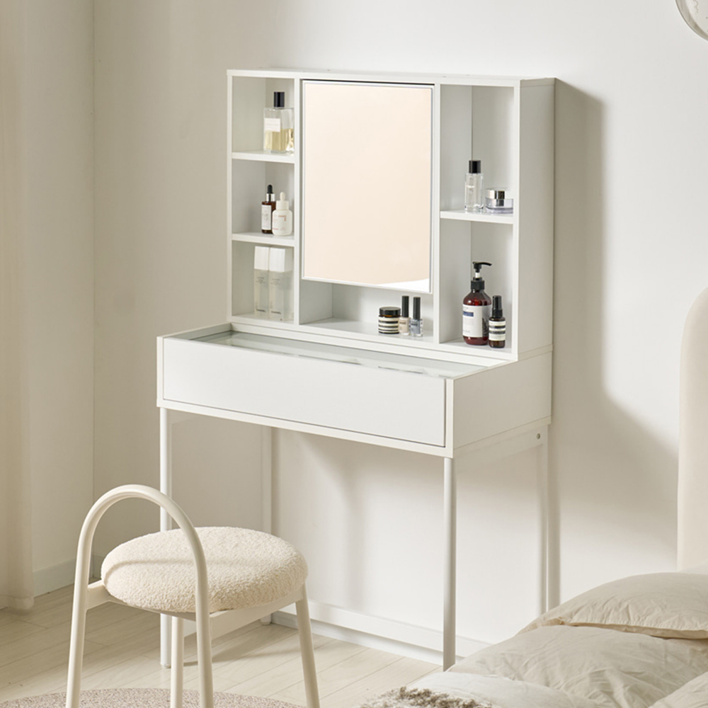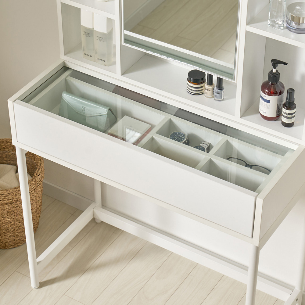 | 품명 | 쥬리 다용도 유리선반 멀티 콘솔 화장대 (2color) |