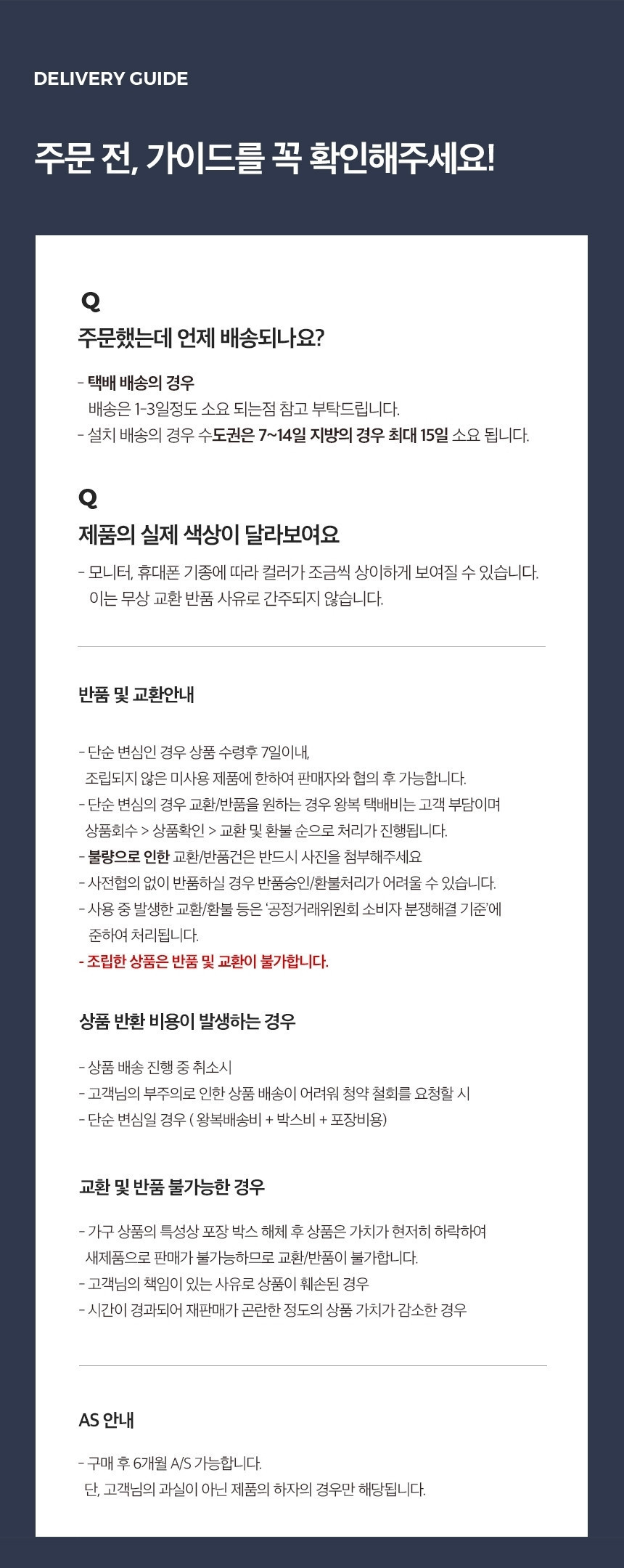 | 교환배송비 | 8,000원 (편도) |