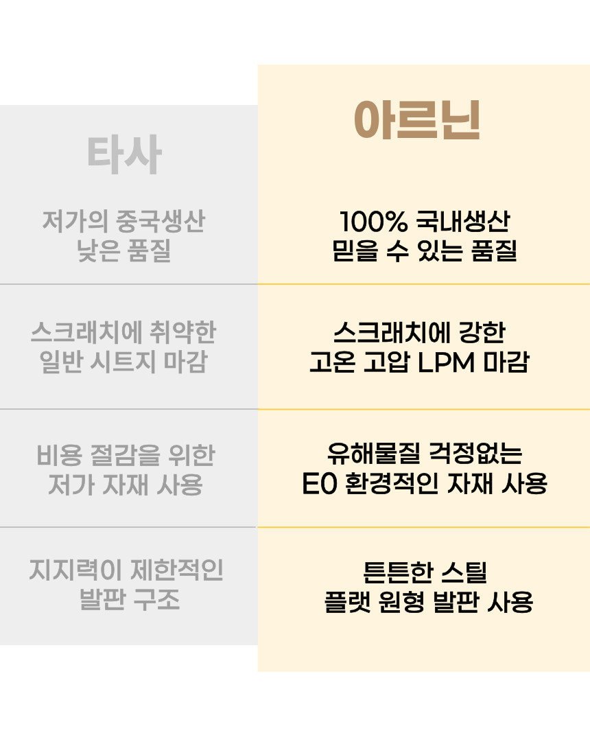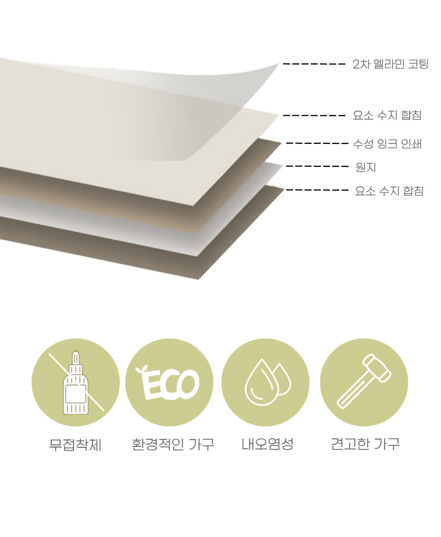 | 주요 소재 | E0 22T, MDF, LPM, 스테인리스 스틸 |