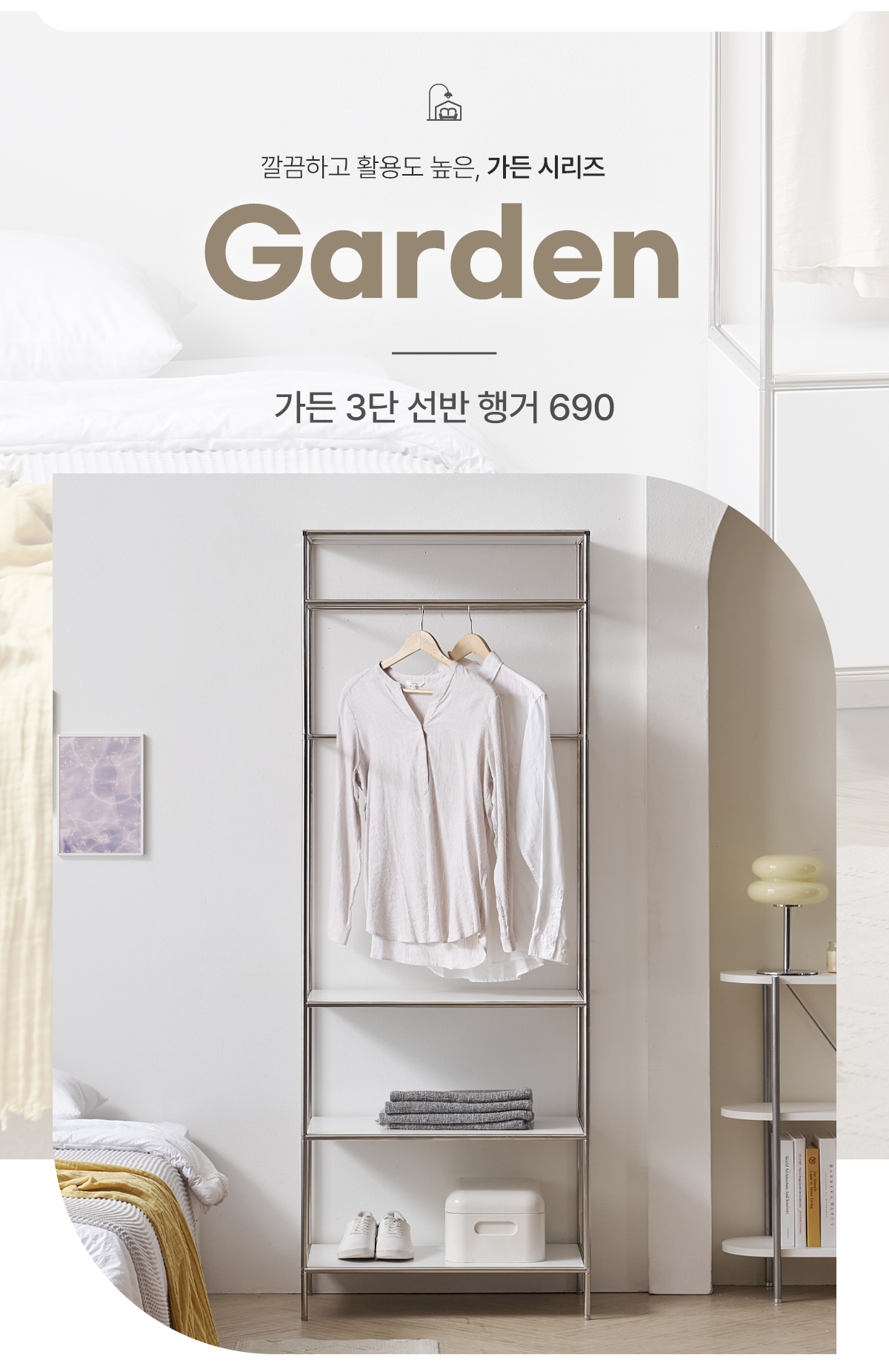 | 품명 | 가든 미드센츄리 3단 오픈 선반 모듈 행거 690 (1color) |