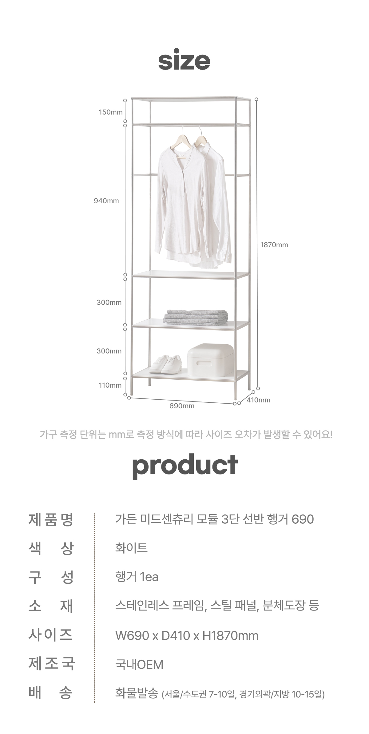 | 크기 | W690 x D410 x H1870mm |