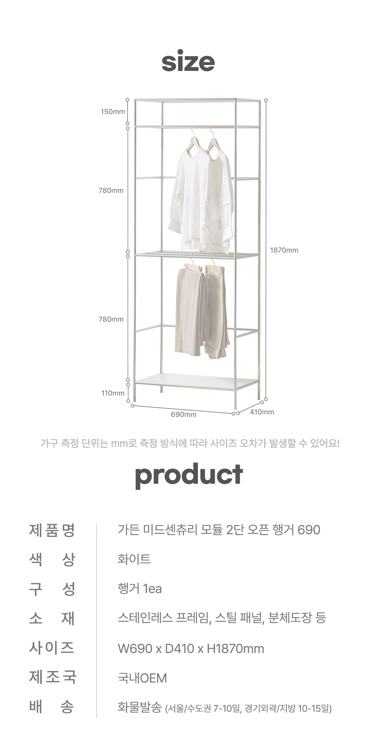 | 품명 | 가든 미드센츄리 2단 오픈형 시스템 모듈 행거 690 (1color) |