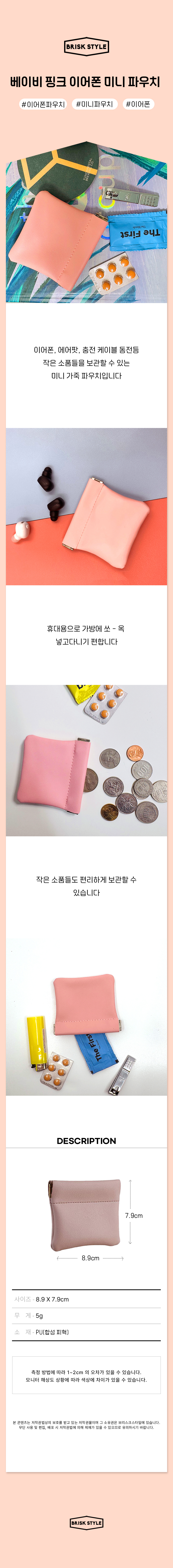 | 품명 및 모델명 | 베이비 핑크 이어폰 미니 파우치 |