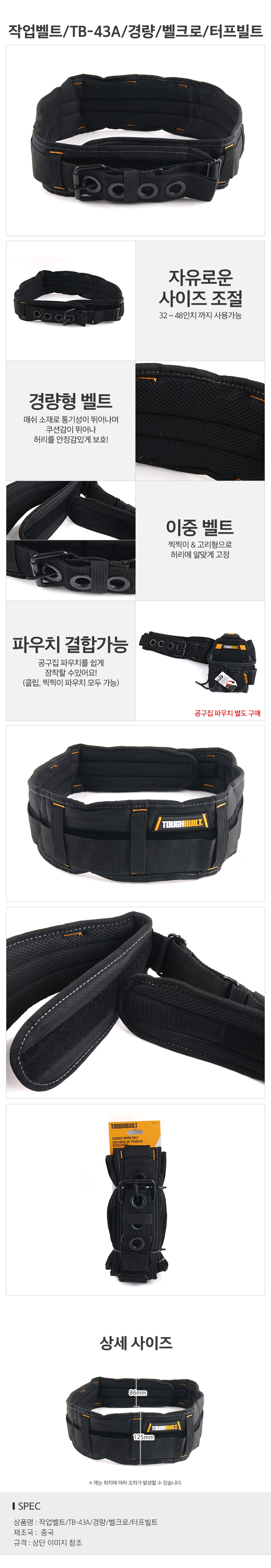 [바이핸즈]작업벨트/TB-43A/경량/벨크로/터프빌트