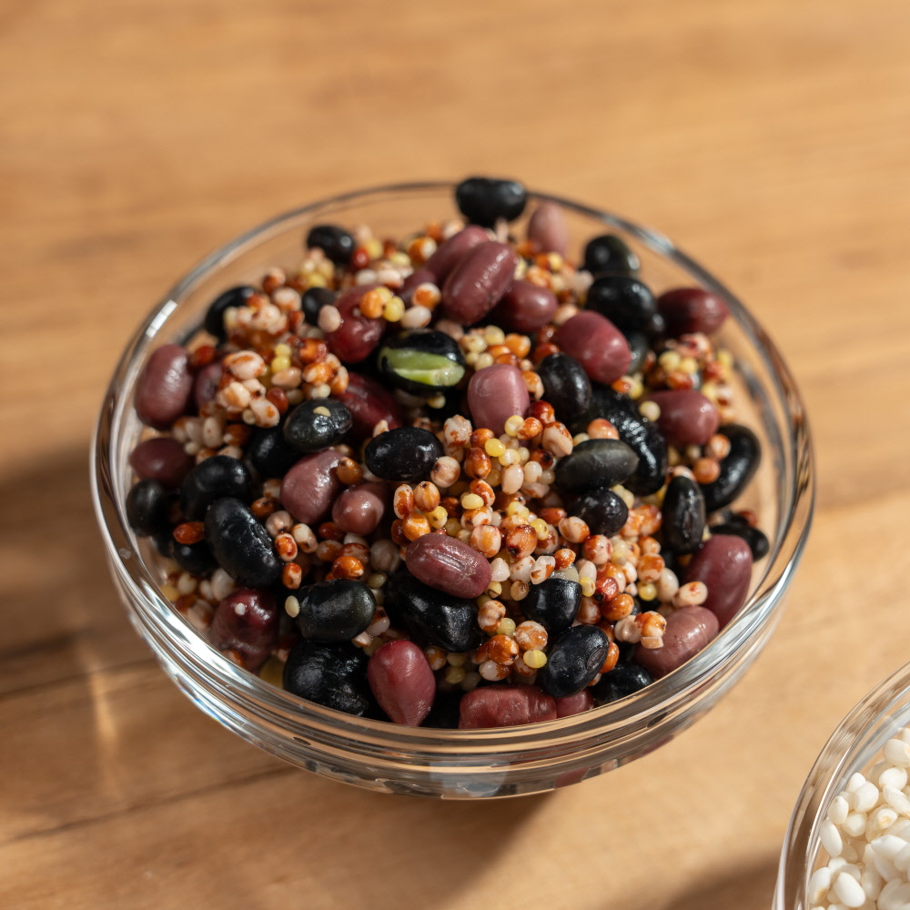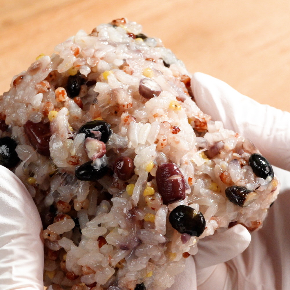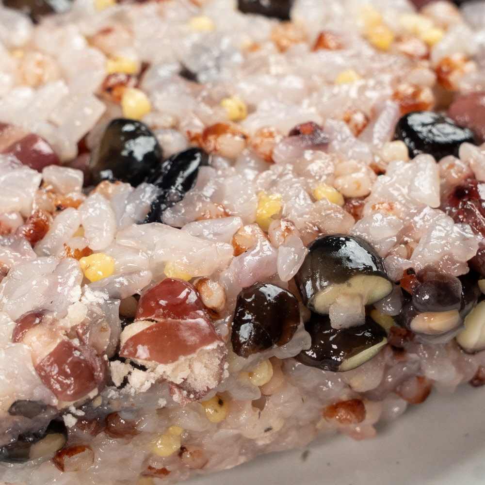 o 원재료 : 찹쌀(국산,유기농)64%, 쥐눈이콩(국산)6.4%, 서리태(국산)6.4%, 팥(국산)6.4%, 찰수수(국산)12.8%, 찰기장(국산)3.2%, 천일염(국산)0.8%