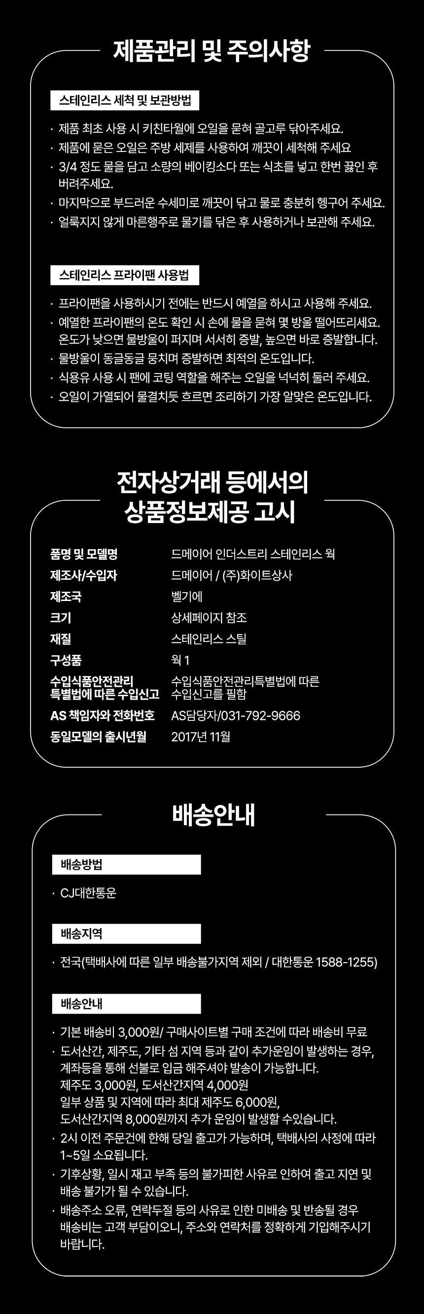 | 제조자, 수입품의 경우 수입자를 함께 표기 | 제조:Demeyere/수입:㈜화이트상사 |