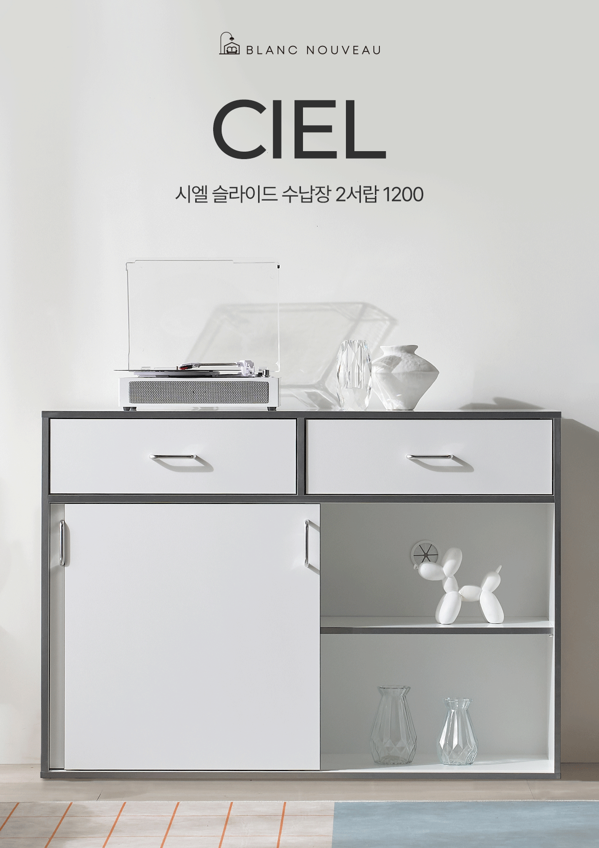 | 품명 | 시엘 미닫이 수납장 원룸 슬라이딩 2서랍 수납장 1200 (1color) |