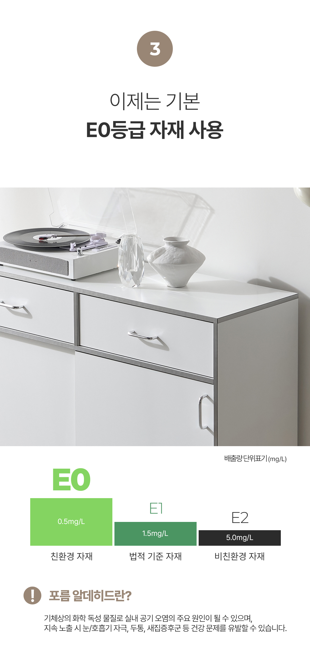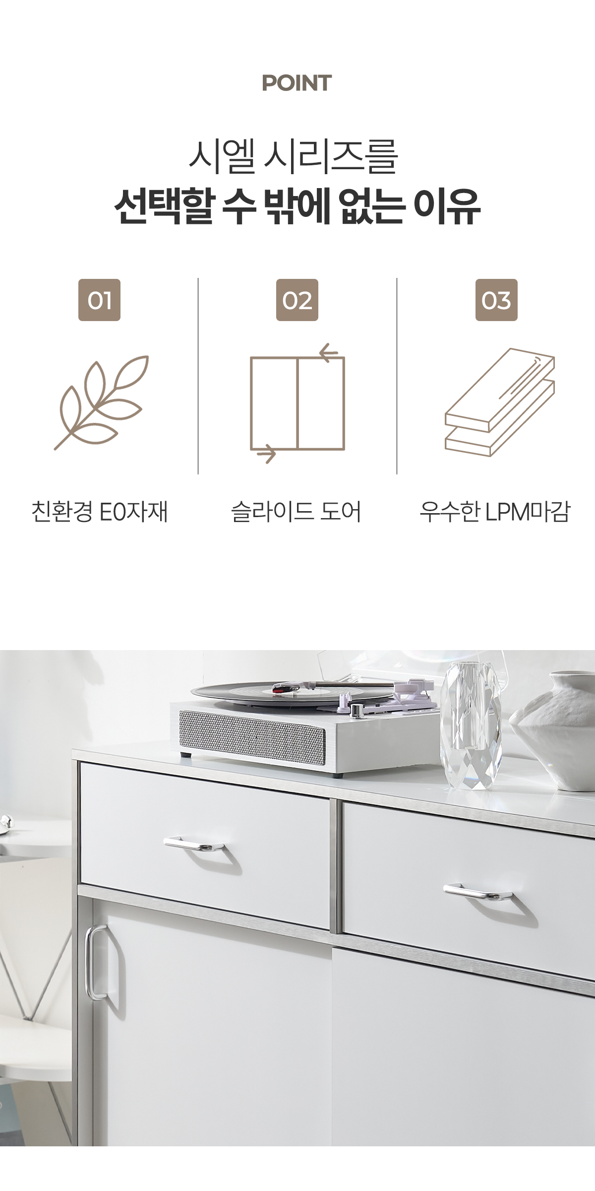 | 주요 소재 | E0 LPM, PB, E0 ABS 실버엣지, 스틸 손잡이, 3단 볼레일, PVC 등 |