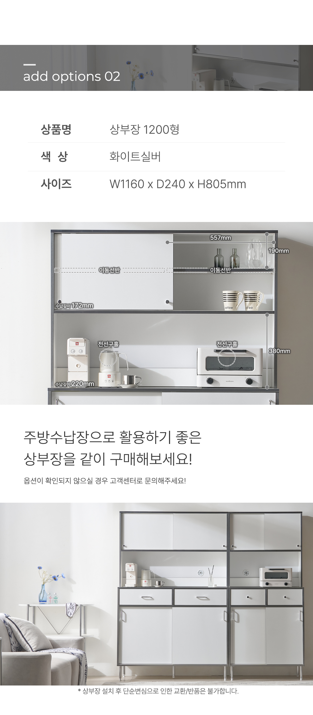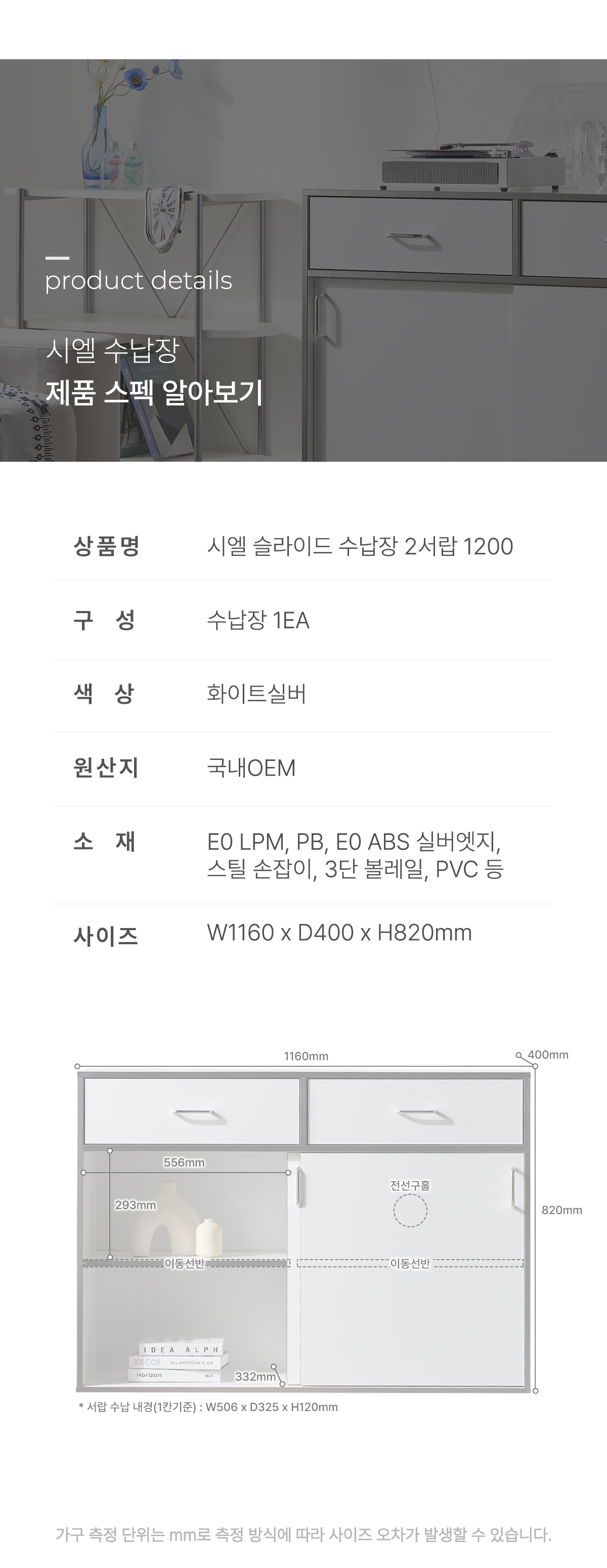 | 크기 | W1160 x D400 x H820mm |
