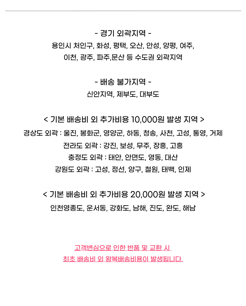 | 교환배송비 | 고객센터(01025558184)로 문의해주세요. |