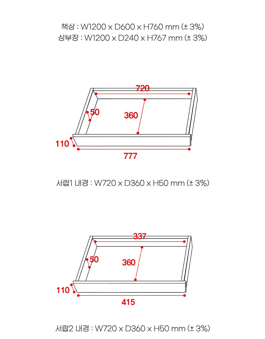 | 크기 | W1200 x D600 x H760 / 1527 mm (± 3%) |