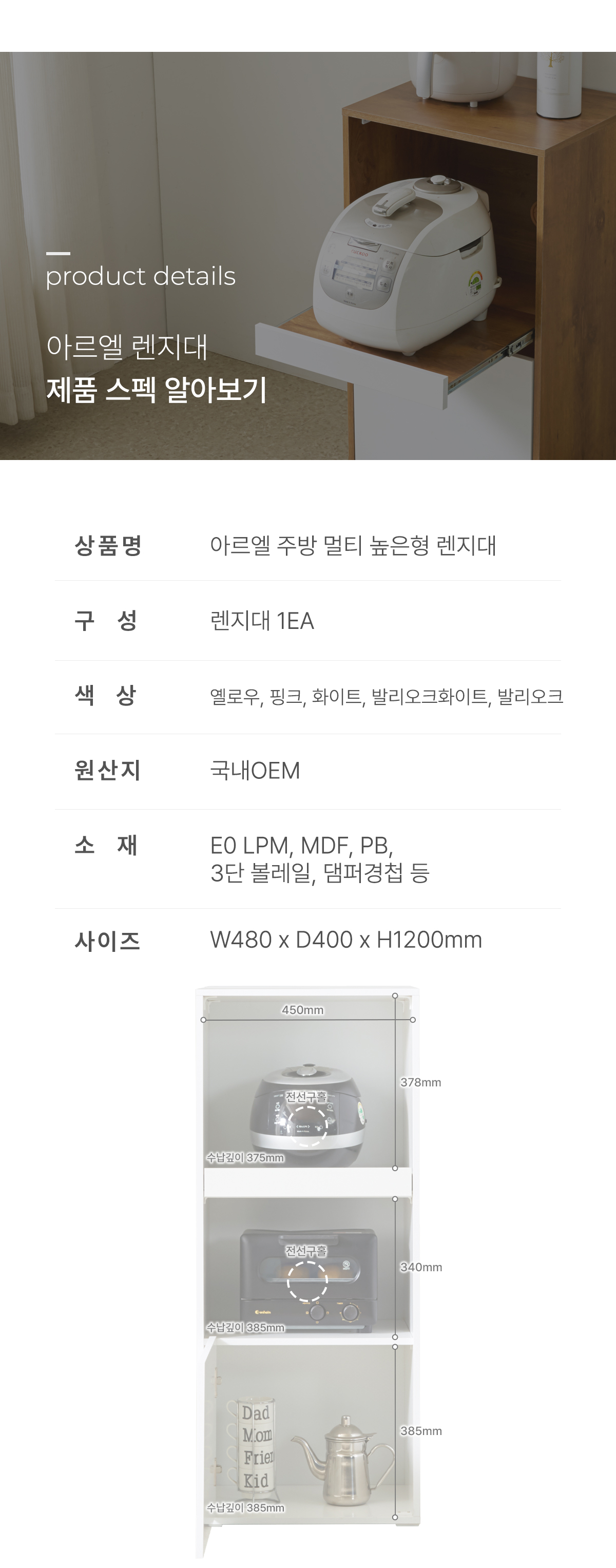 | 품명 | 아르엘 미니 주방 높은 전자렌지 멀티 다용도 렌지대 500 (5color) |