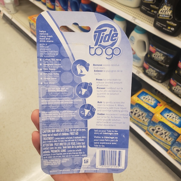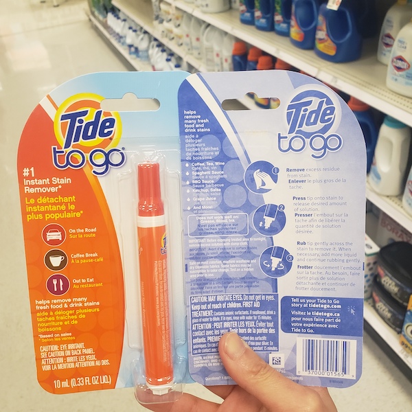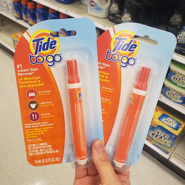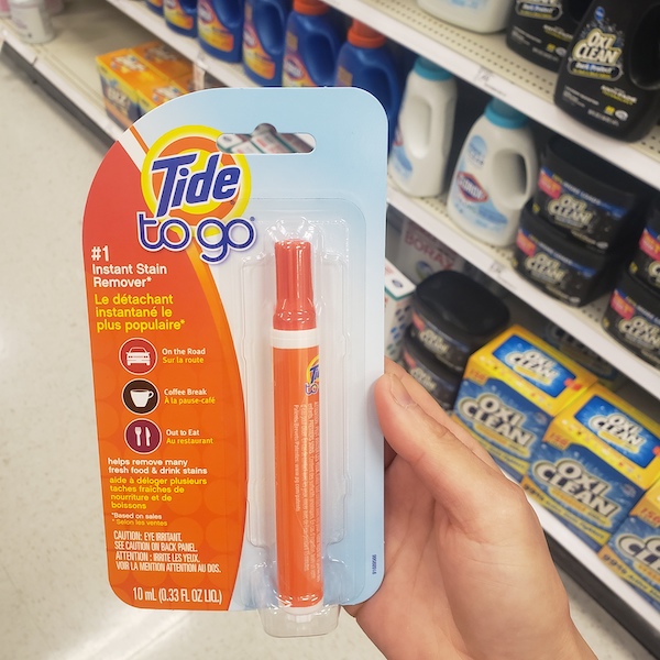 타이드 휴대용 섬유 얼룩 제거제도 같이 사용해 보세요.