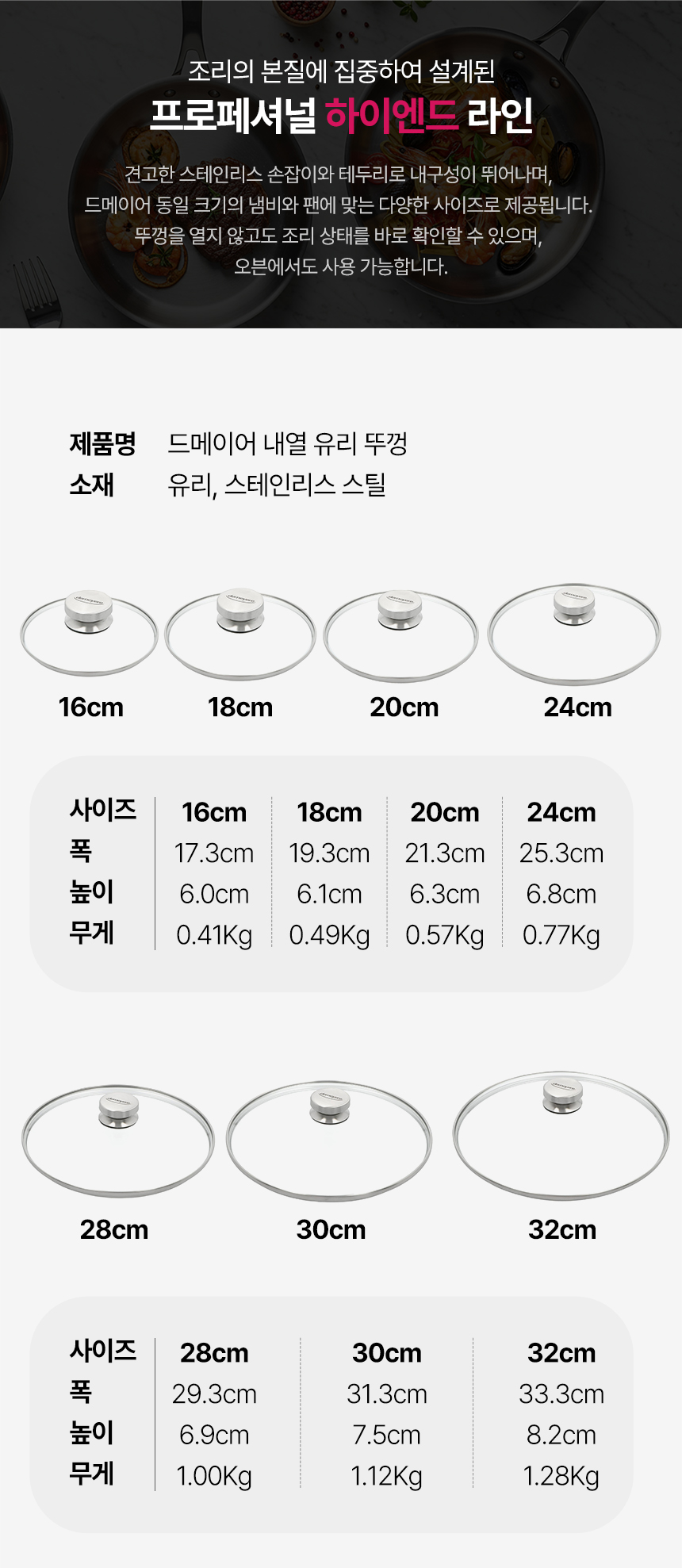 품명 및 모델명 | 드메이어 내열유리뚜껑 16cm |