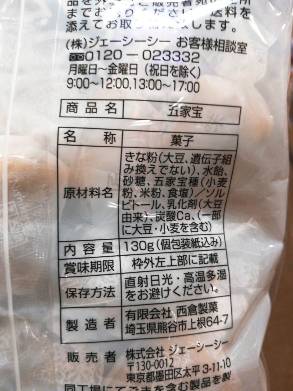 원재료- 키나코분, 물엿, 설탕, 오가보종